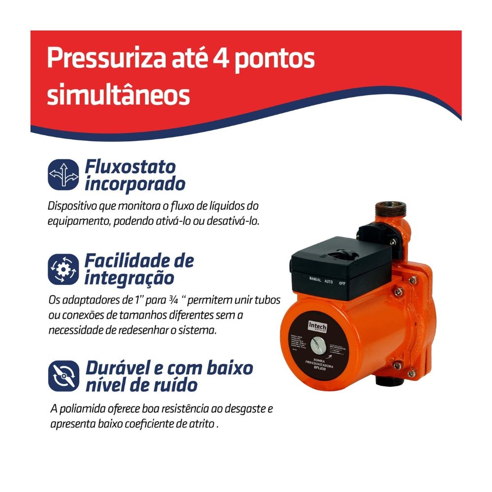 Ideal para pressurização de casas, apartamentos, sistemas de ar condicionado, sistemas de aquecimento central a gás, pressurização de aquecedores solares e circulação de água.