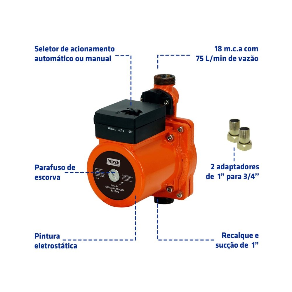 Acompanha 2 adaptadores de 1‘’ para ¾’’