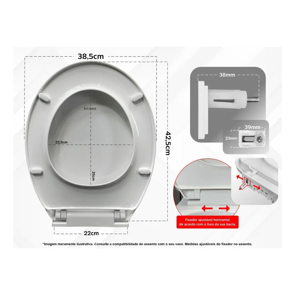 Priorize a saúde e o bem-estar da sua família com o Assento Sanitário Soft Close. Oferecemos um produto que combina funcionalidade, segurança e higiene, garantindo uma experiência de uso confortável e livre de preocupações. Adquira agora mesmo o nosso assento sanitário e desfrute de um ambiente limpo, seguro e sofisticado em seu banheiro. Sua família merece o melhor!