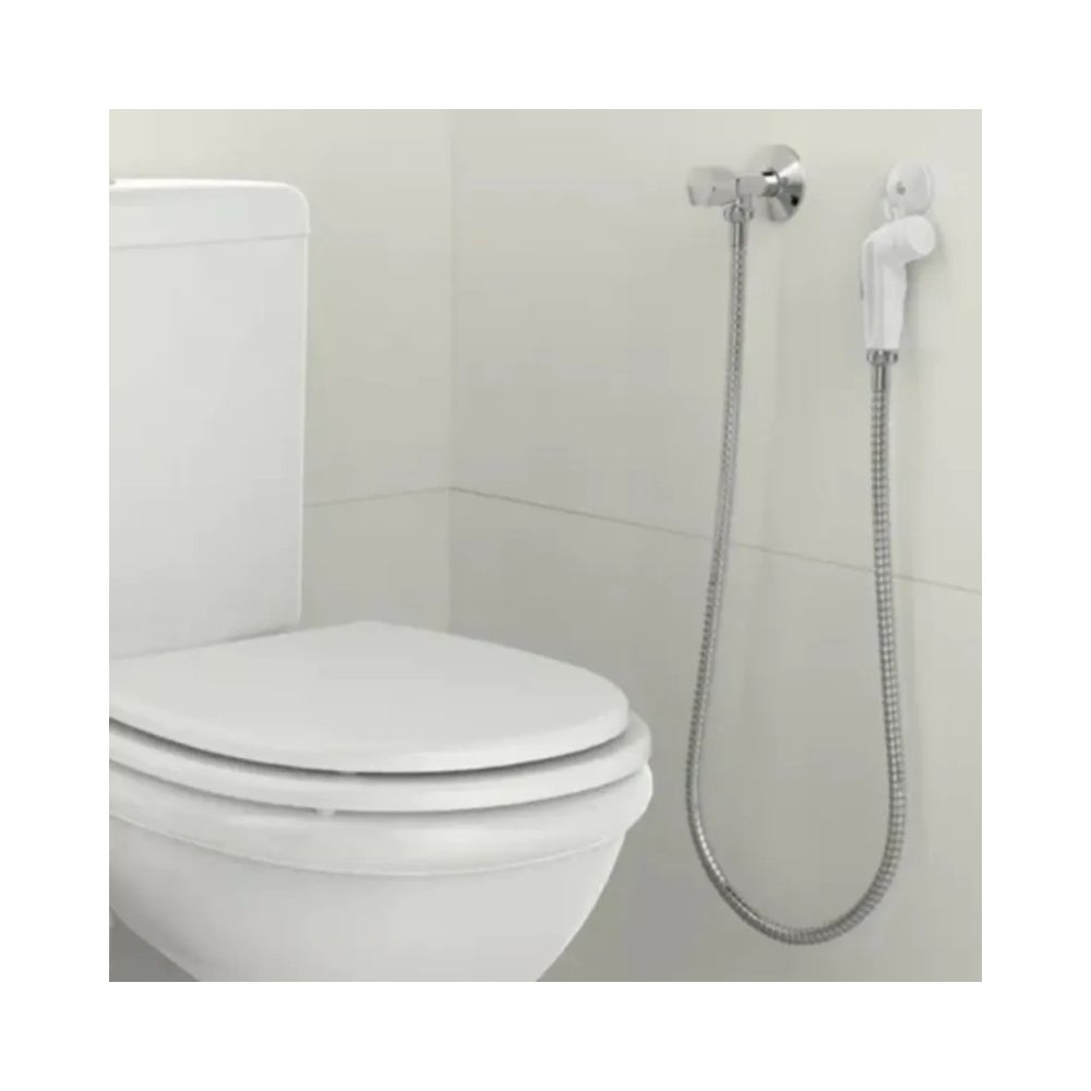 Kit Ducha Higiência Branca e Cromada com suporte, mangueira e gatilho. Produzido em ABS com potência de água e fácil manuseio.