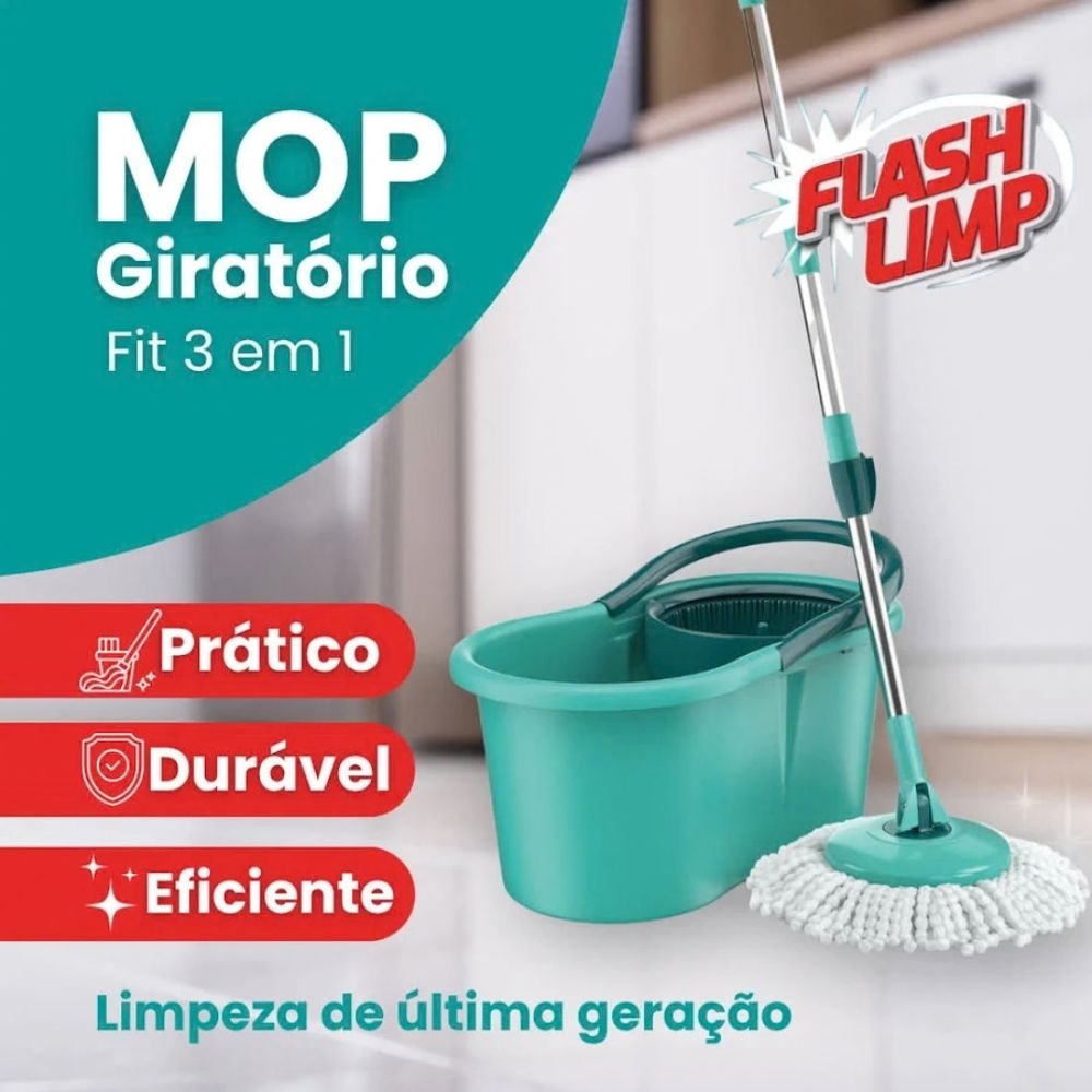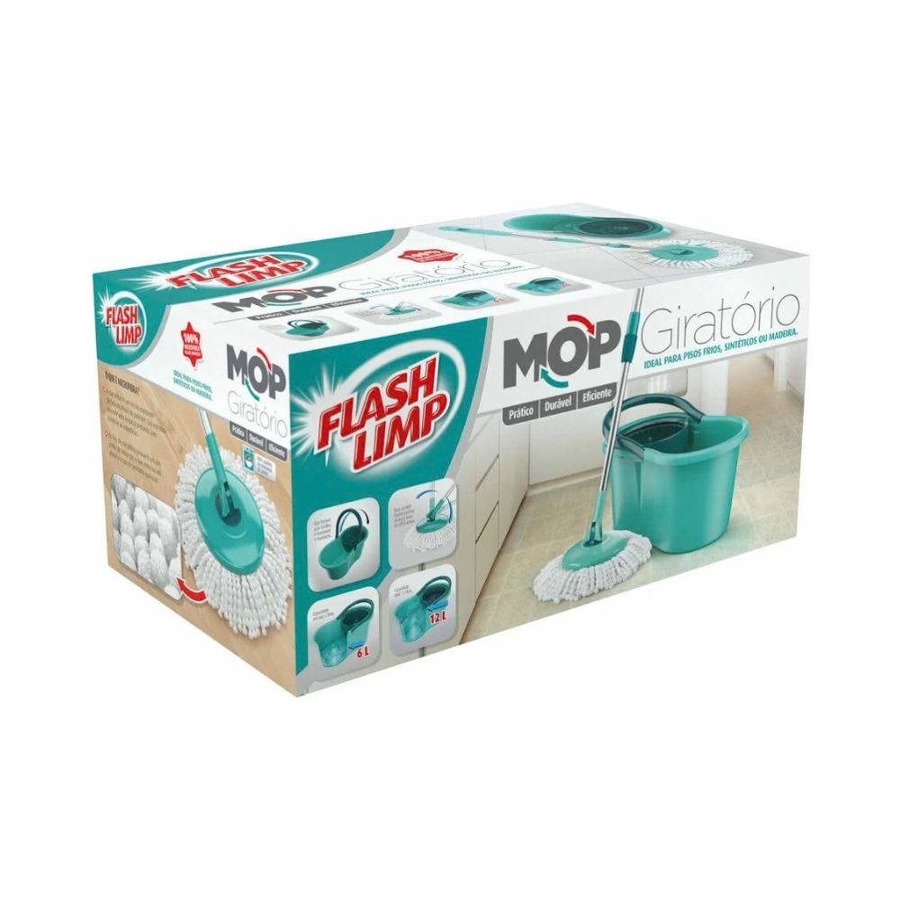 O Mop Giratório da Flash Limp é a solução mais prática e moderna para limpeza. Ele substitui o rodo, a vassoura e o pano de chão. Com ele você pode limpar pisos frios, sintéticos ou em madeira. Seu refil de microfibra é lavável e pode ser substituído quando necessário.