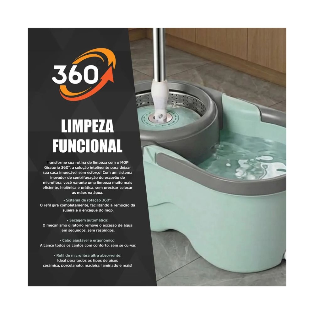 Descubra a revolução na limpeza com o Mop Giratório de 13 Litros, a escolha ideal para manter sua casa, escritório ou estabelecimento sempre impecáveis. Com design moderno e funcionalidades inovadoras, ele é pensado para tornar as tarefas domésticas mais fáceis, rápidas e eficientes.