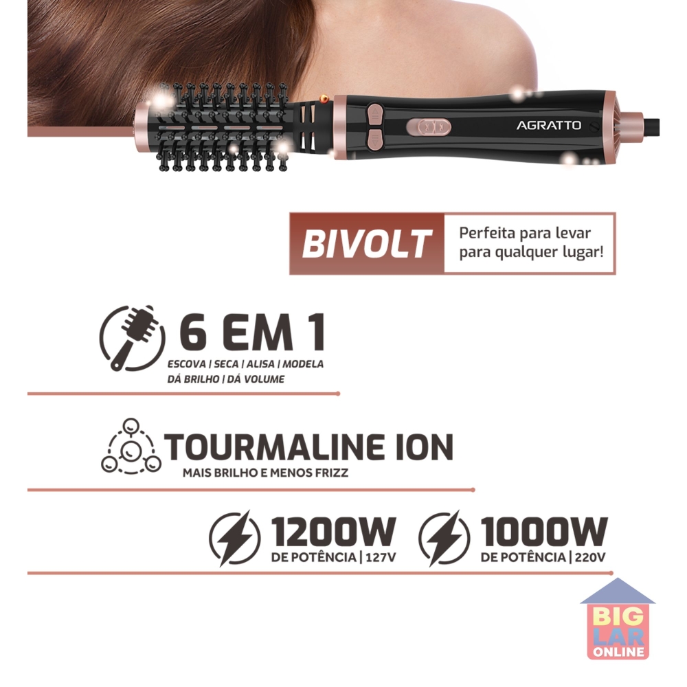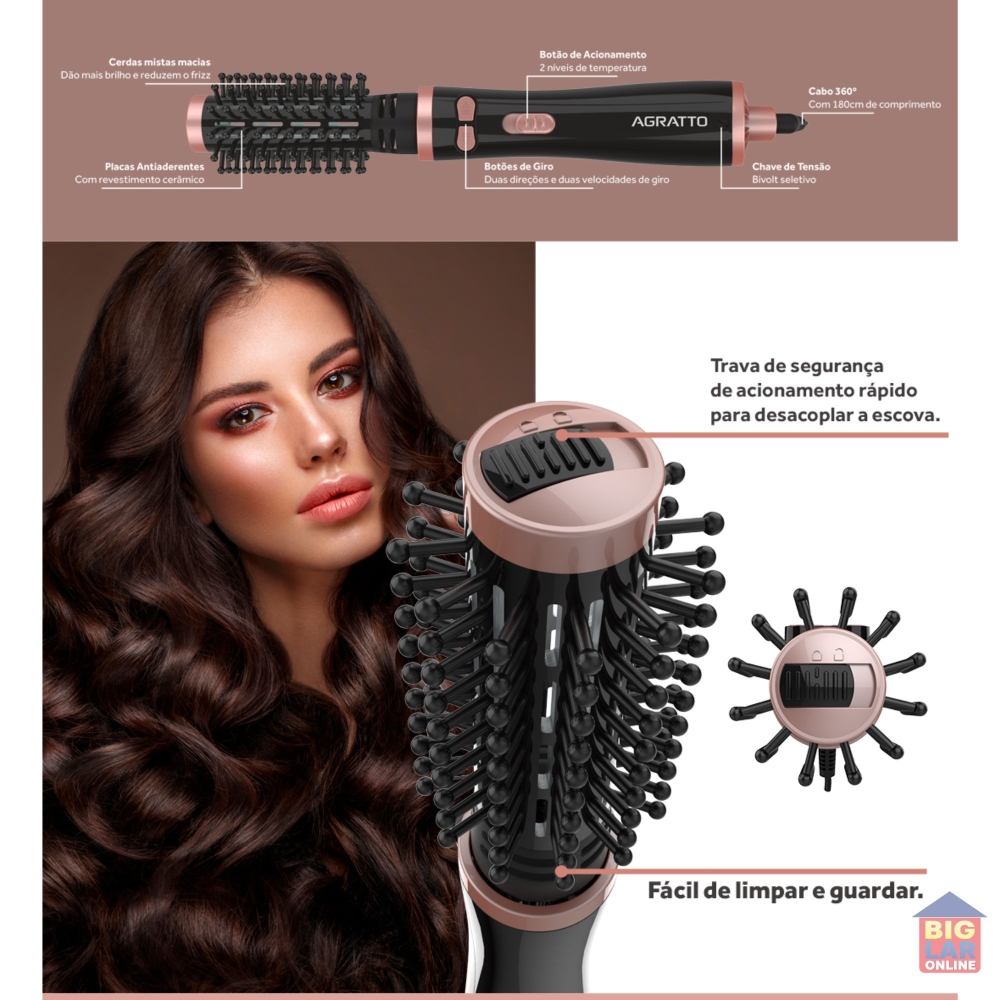 Escova de Cabelo Rotativa Della Bivolt Seletivo Agratto 1200/1000W A