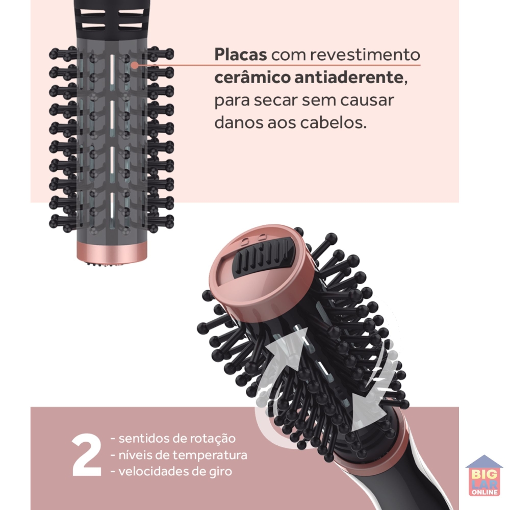 - Economia de tempo: a escova rotativa permite que você seque e modele seu cabelo simultaneamente, economizando tempo e tornando o processo mais eficiente.