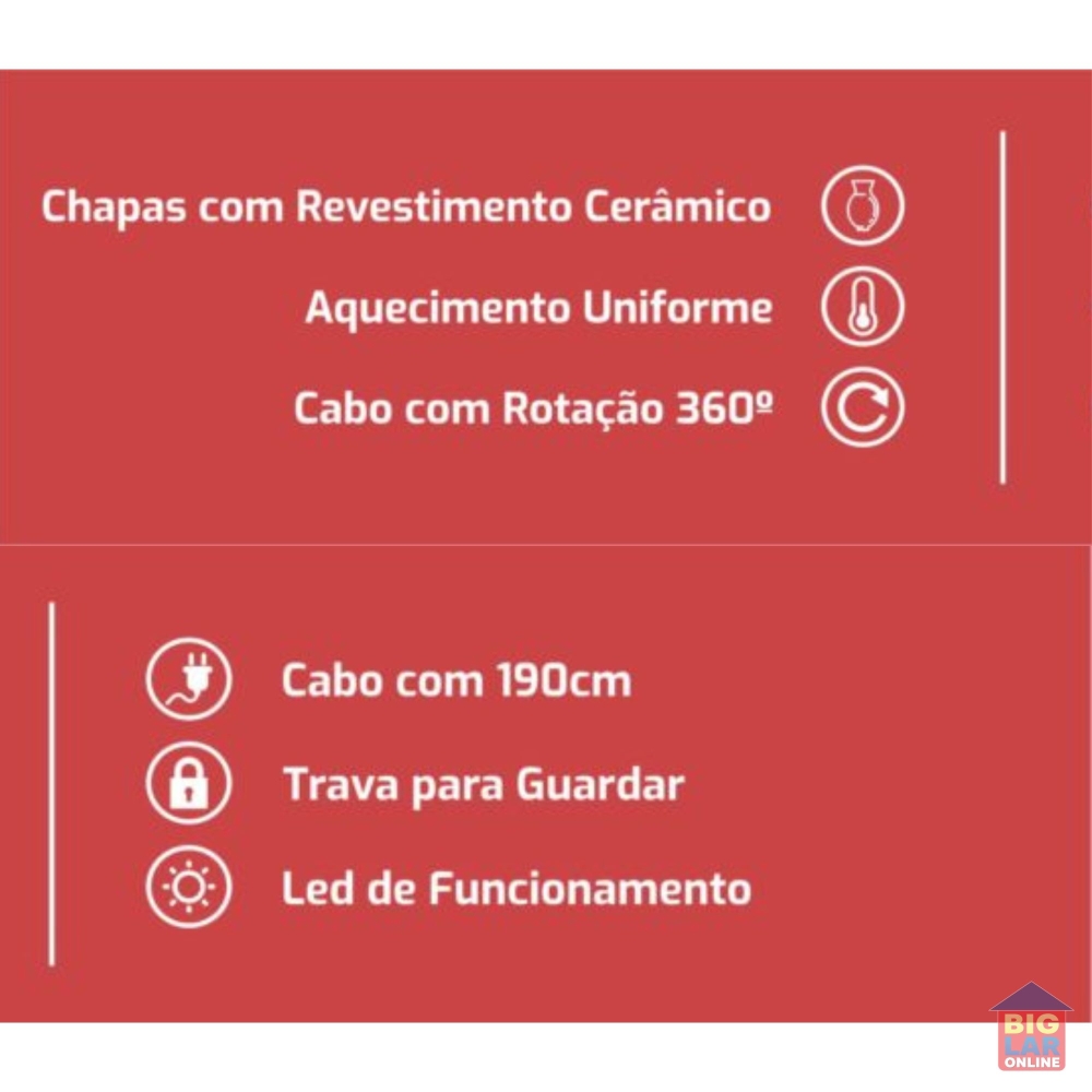 • Alcança uma temperatura de até 200°C