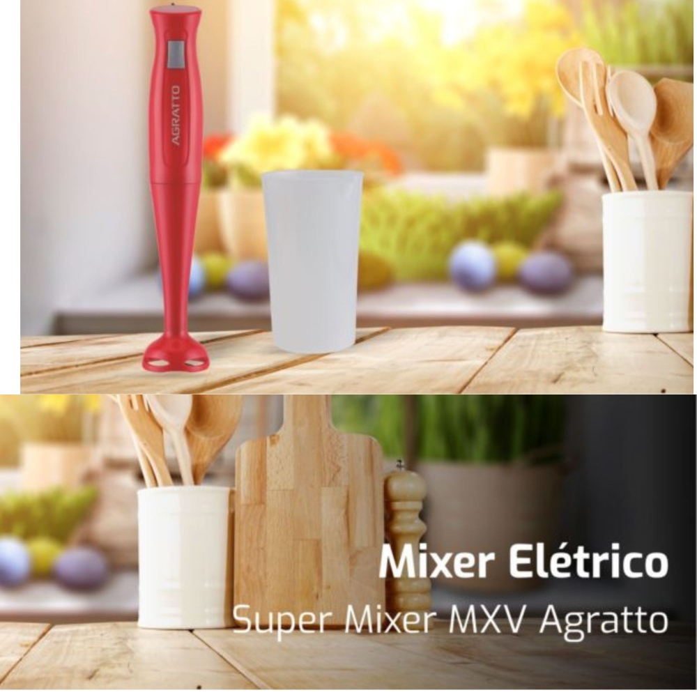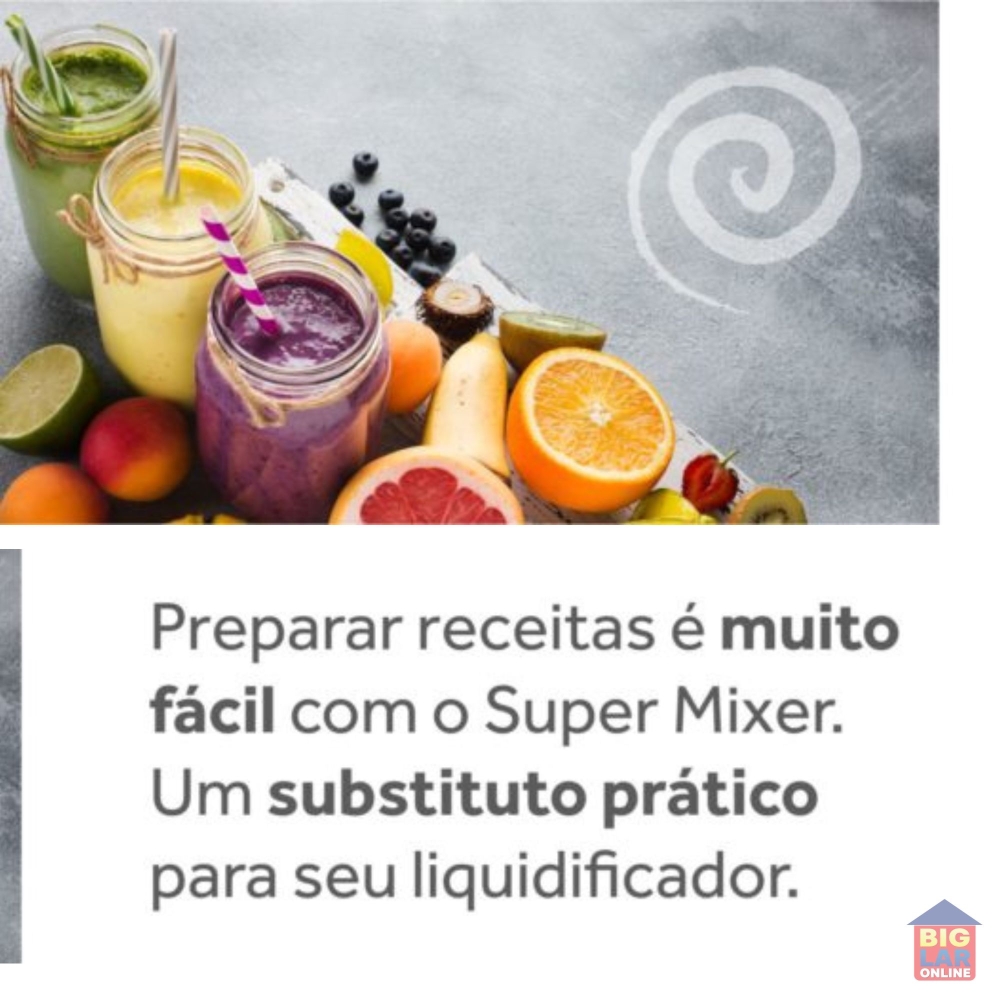 Praticidade sempre à mão. Preparar receitas ficou mais fácil com o Super Mixer. Com lâminas de aço inox e motor 200W, você prepara molhos, massas, concentrados, shakes, cappuccinos, vitaminas e muitas outras receitas. Um substituto prático do liquidificador que pode ser usado até na panela.