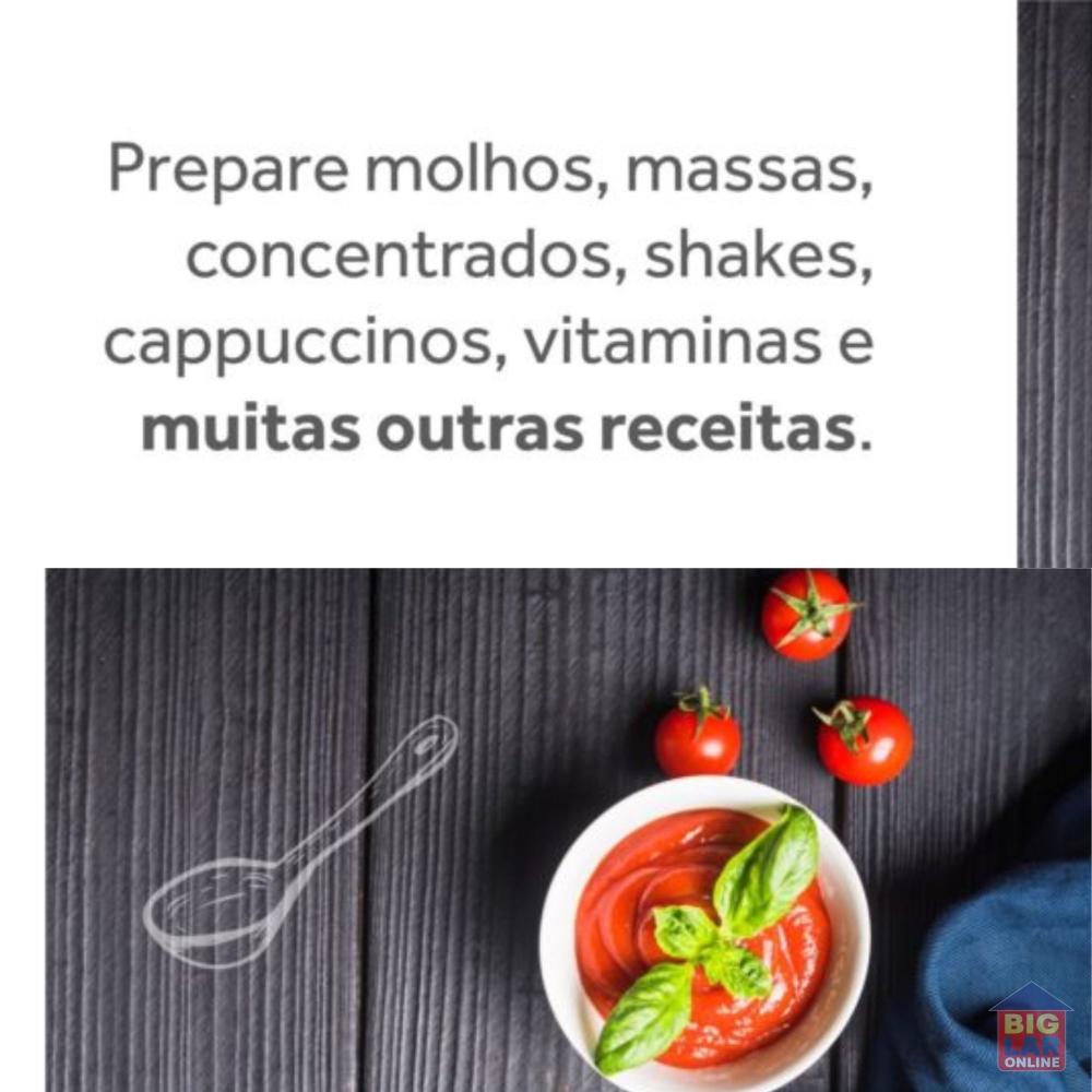 Praticidade sempre à mão. Preparar shakes, sucos, vitaminas, sobremesa, molhos, cremes, entre outras receitas, nunca foi tão fácil. Saúde e praticidade para você.