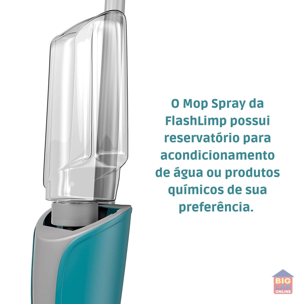 O Mop Spray da FlashLimp possui reservatório para acondicionamento de água ou produtos químicos de sua preferência.