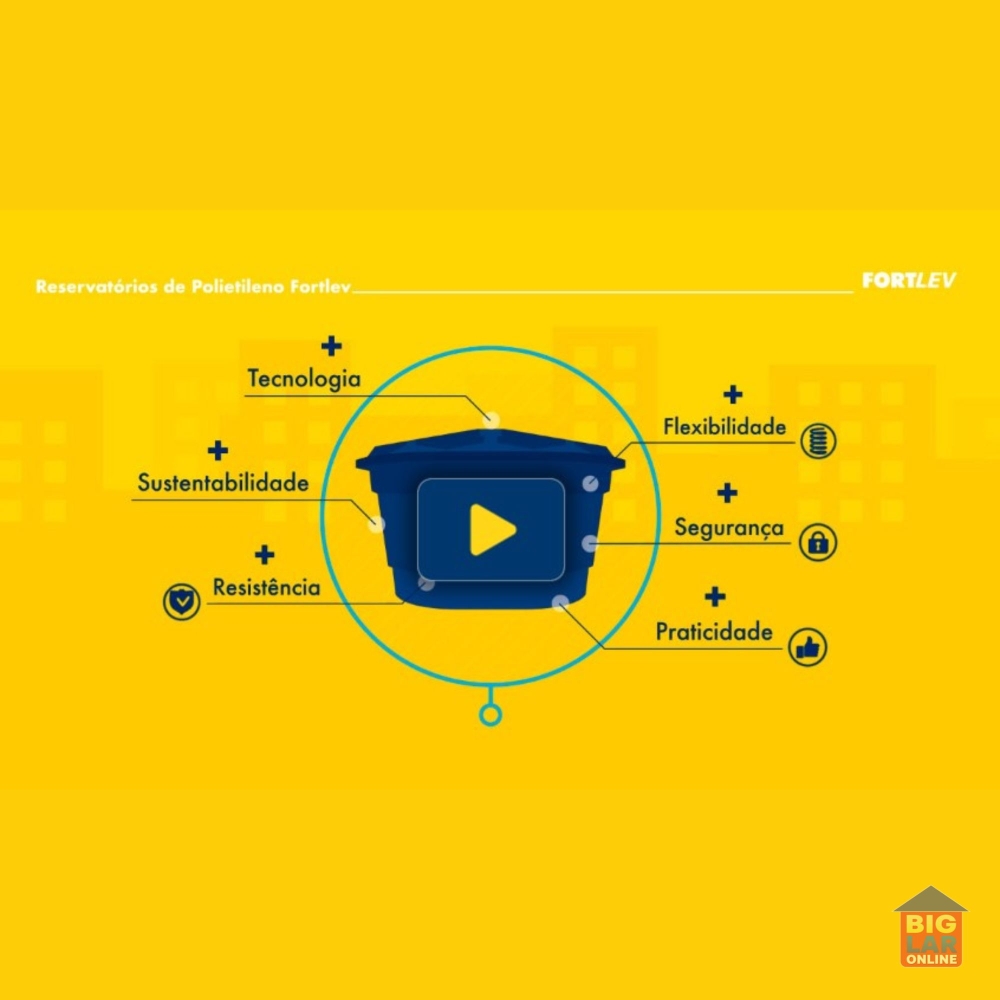 - Amplo armazenamento de 1000 L; - Plástico polietileno forte e resistente às variações do clima; - Material que respeita as normas de segurança; - Instalação simples.