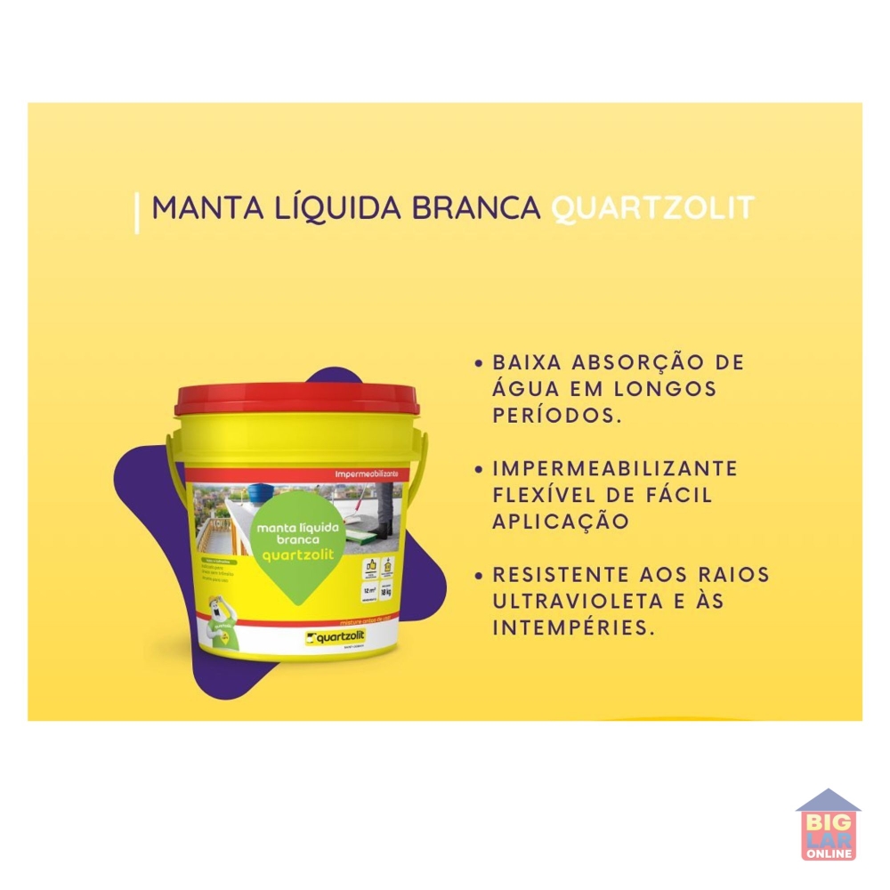super manta líquida quartzolit é uma manta flexível para impermeabilizar coberturas com e sem trânsito, como lajes de concreto armado, telhas de fibrocimento, telhas cerâmicas e superfícies metálicas (telhas, rufos e pingadeiras de lata galvanizadas).