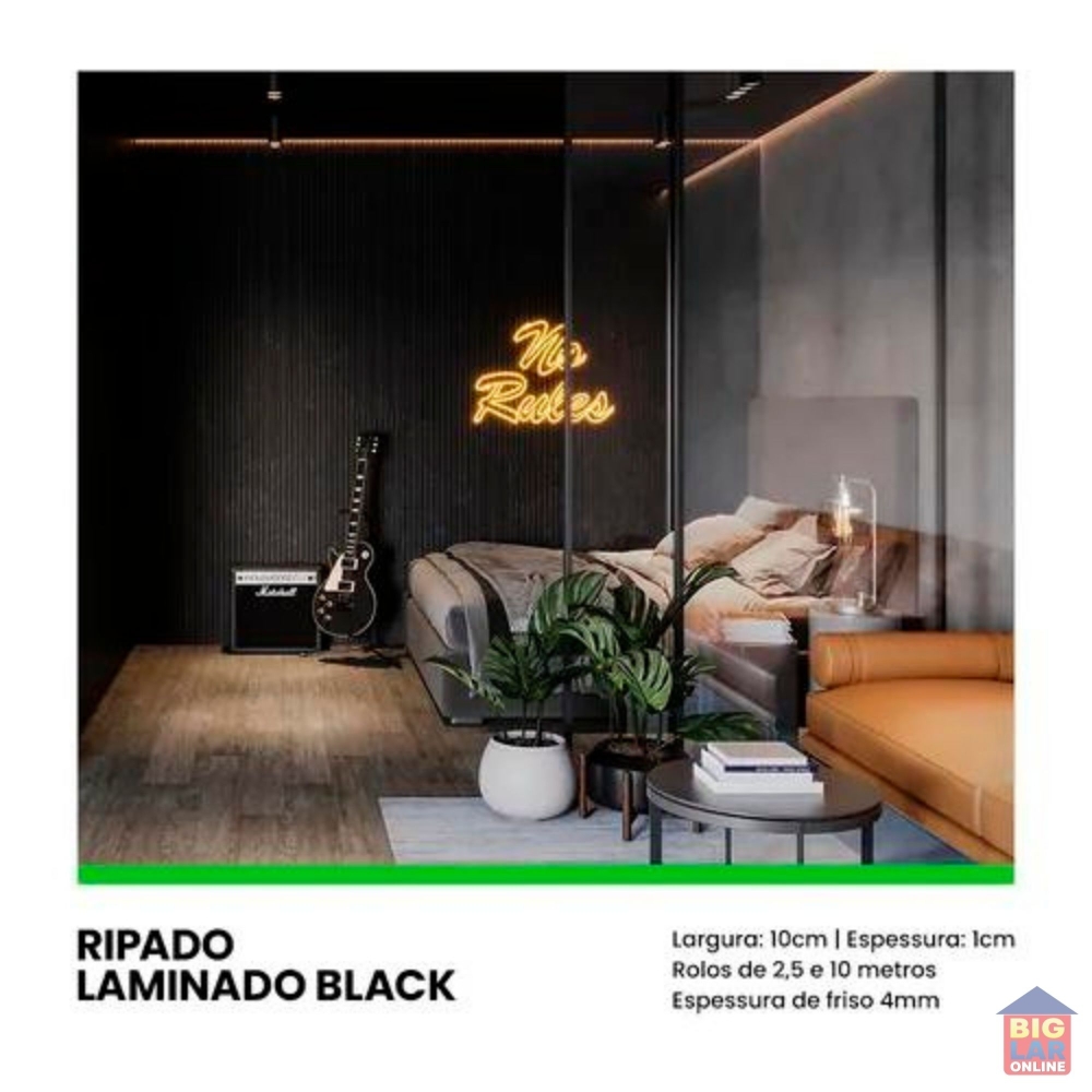 Painel Ripado Laminado 10 m de Comprimento Cor Black Linha Urban - Big Lar Online