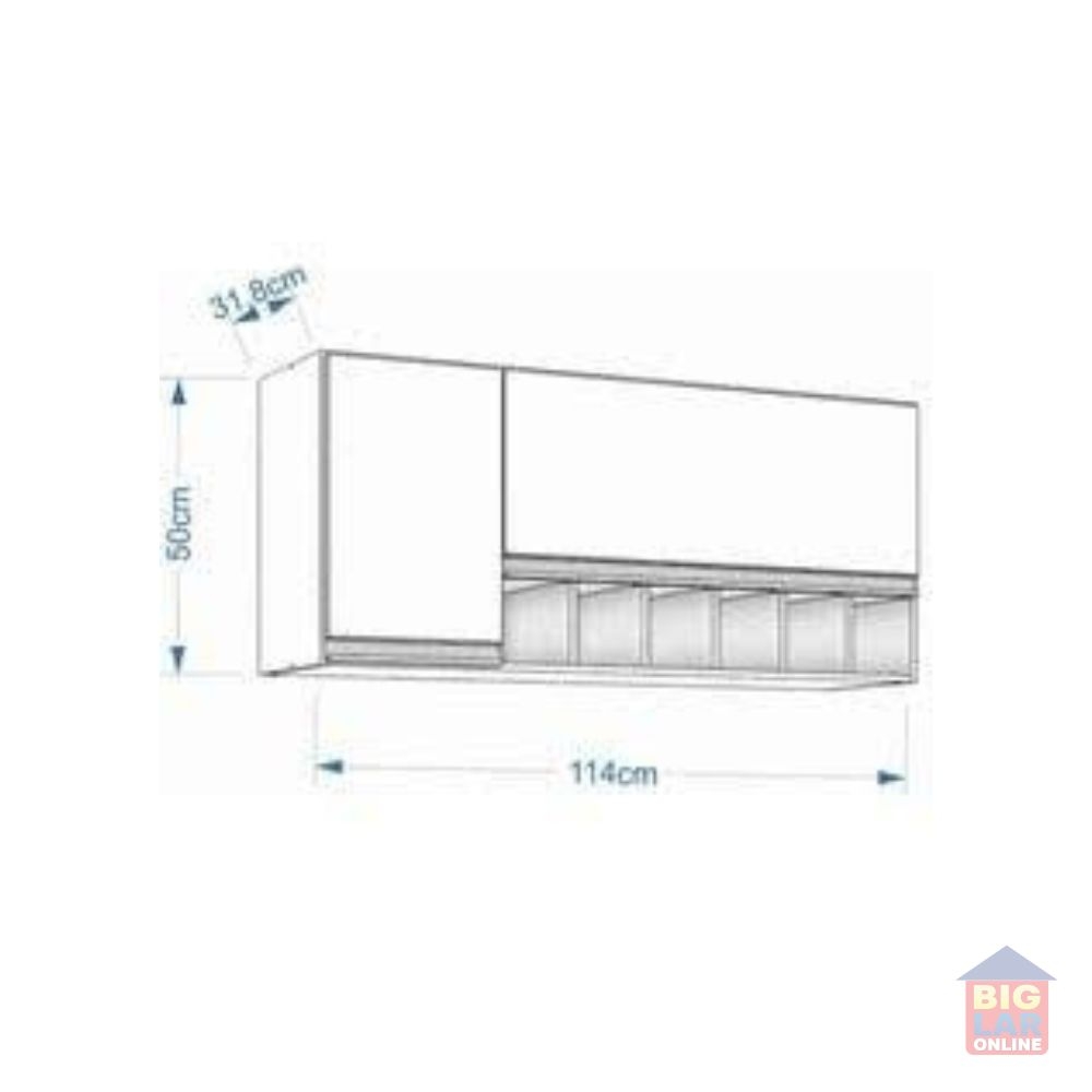 Conteúdo da Embalagem: 1 Armário Aéreo, 1 Kit de Puxadores, 1 Manual de Instruções