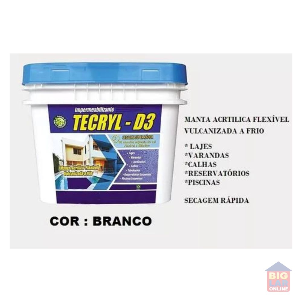 A Manta Acrílica Impermeabilizante D3, da Tecryl, vem em embalagem plástica com 4 kg e proporciona um acabamento perfeito para a sua obra, por isso é a melhor escolha!