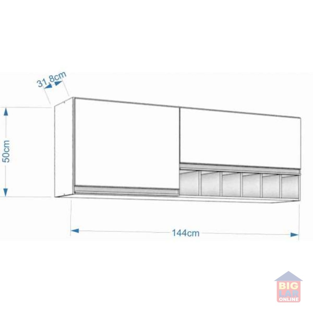 Conteúdo da Embalagem: 1 Armário Aéreo, 1 Kit de Puxadores, 1 Manual de Instruções