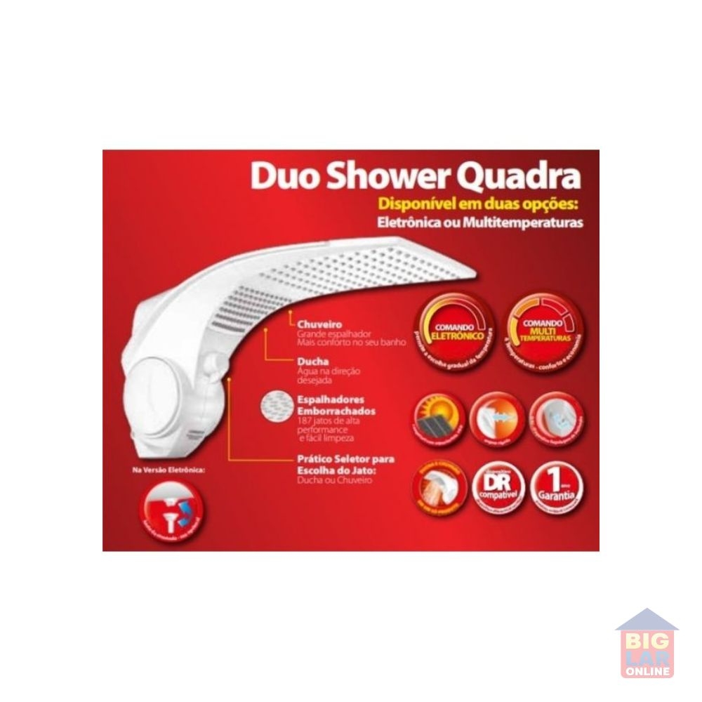 Ducha e chuveiro em um só produto. Uma opção exclusiva, inteligente e eficaz. Um banho de design e tecnologia. Mistura de linhas fluídas com espalhador ultrafino e de alta tecnologia fazem da Duo Shower um banho único e inesquecível. Chuveiro com "grande espalhador", que significa água para todo o corpo, ou a ducha com o jato concentrado, direcionável e mais forte, para aquele banho relaxante.