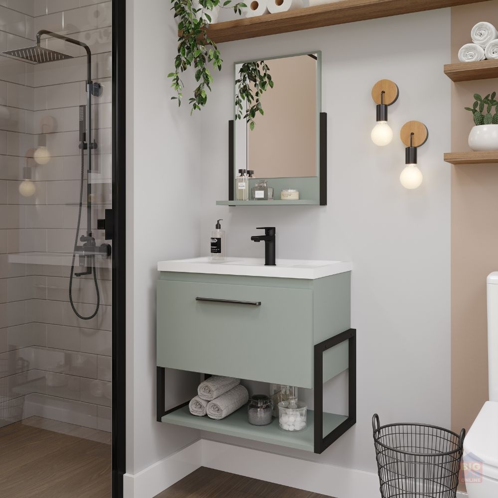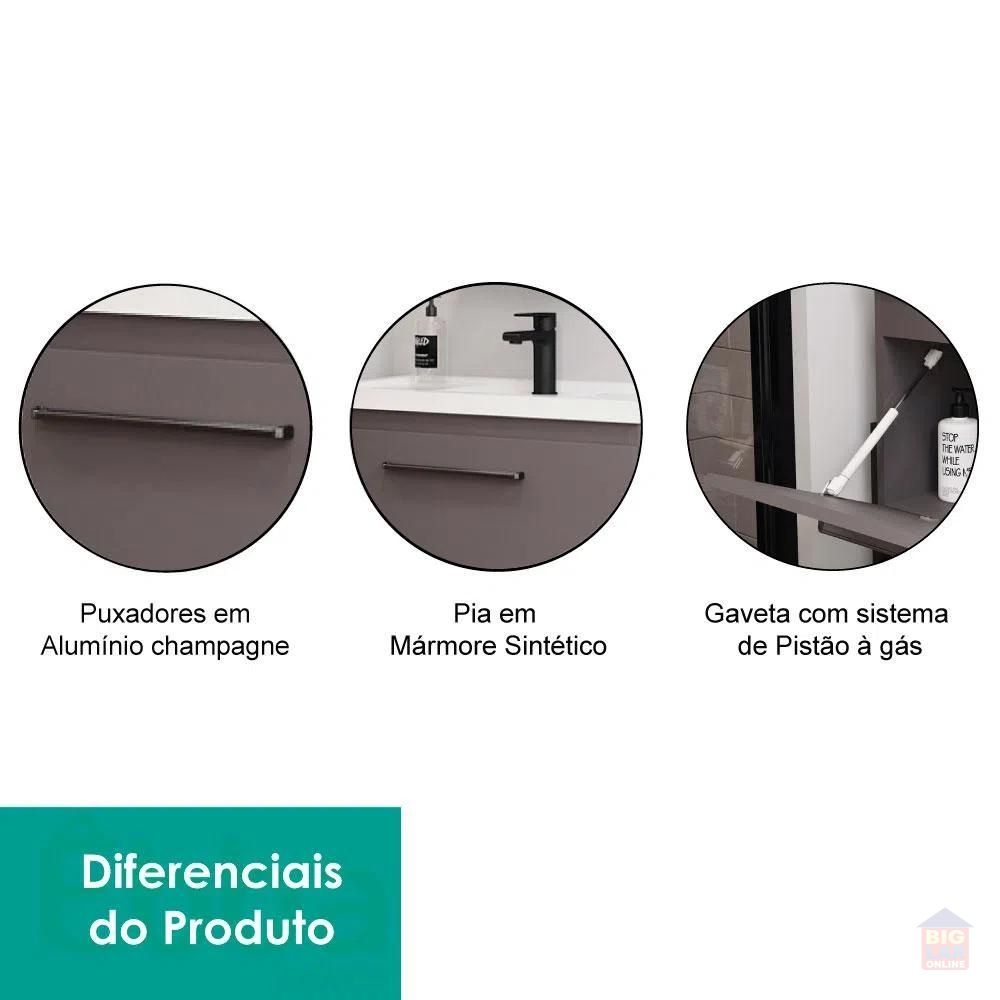 O Kit de Gabinete Suspenso para Banheiro com Espelheira Metalo 55x60,4cm Titânio da MGM Móveis possui estrutura 100% em MDF, tem um amplo espaço interno. Seu lavatório é 100% mármore sintético com mais durabilidade e resistência. Seu design é inovador e sutil, combinando com diversos projetos.