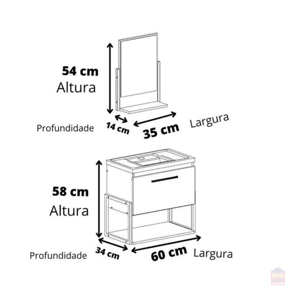 Composição do KIT para Banheiro Gabinete para Banheiro com Espelho