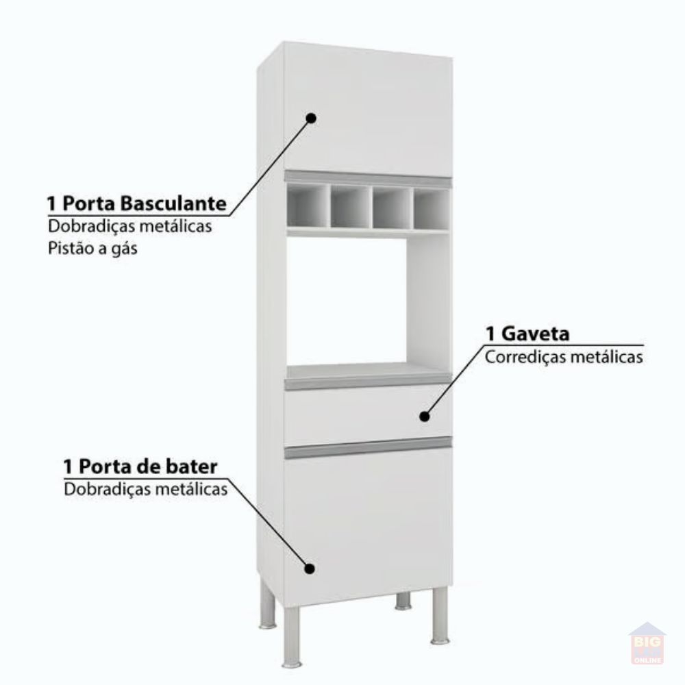 Conteúdo da Embalagem: 1 Paneleiro, 1 Kit de Pés e Puxadores, 1 Manual de Instruções.