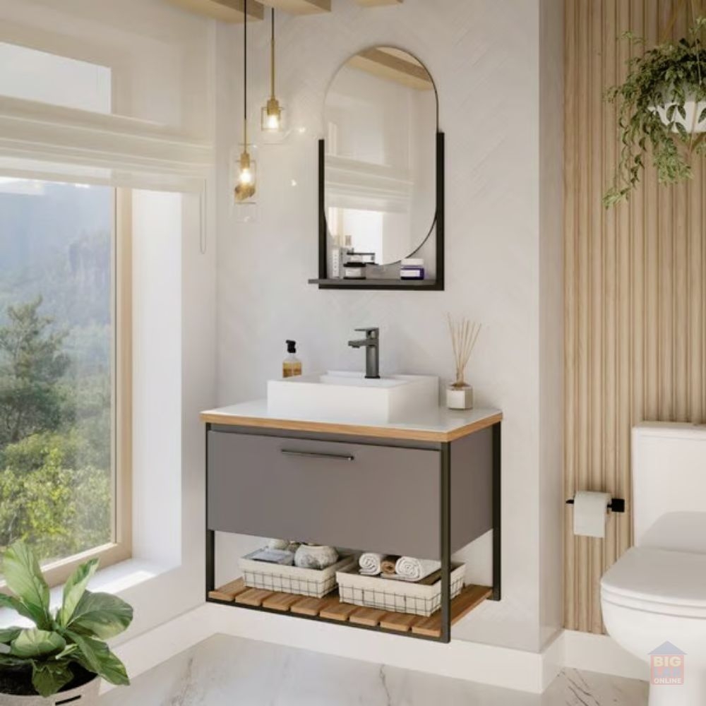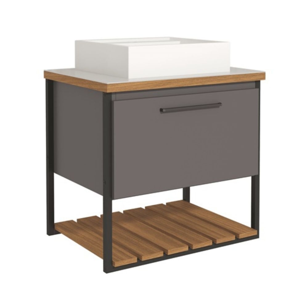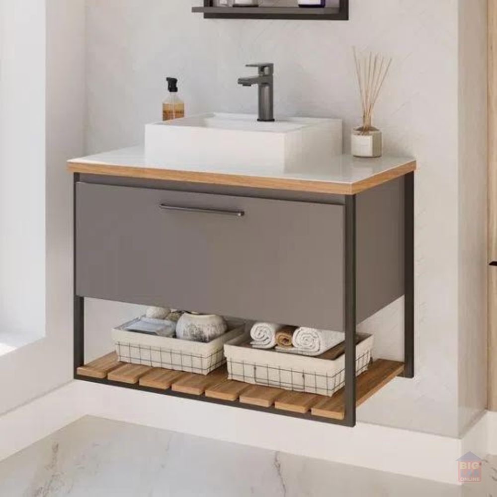 O Gabinete Suspenso para Banheiro Vitta 67,9x61,3cm Titanium da MGM Móveis possui estrutura 100% em MDF, tem um amplo espaço interno. Seu lavatório é 100% mármore sintético com mais durabilidade e resistência. Seu design é inovador e sutil, combinando com diversos projetos.