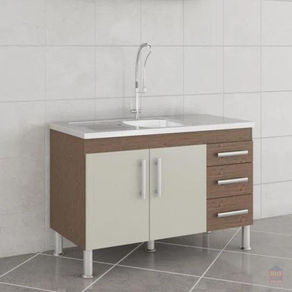 O melhor de tudo é que seu gabinete para cozinha já vai montado para que você tenha mais tempo e conforto sem a necessidade de montar o móvel. Pode ser acoplada ao gabinete para cozinha uma pia de 120 centímetros de granito, sintética ou inox que não acompanha o gabinete mas que você também encontra na Obramax.