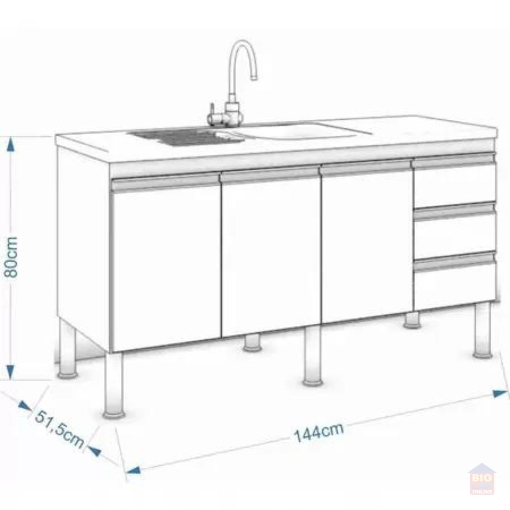 Produto: Balcão Cozinha Ibiza 1,44 Metros Branco