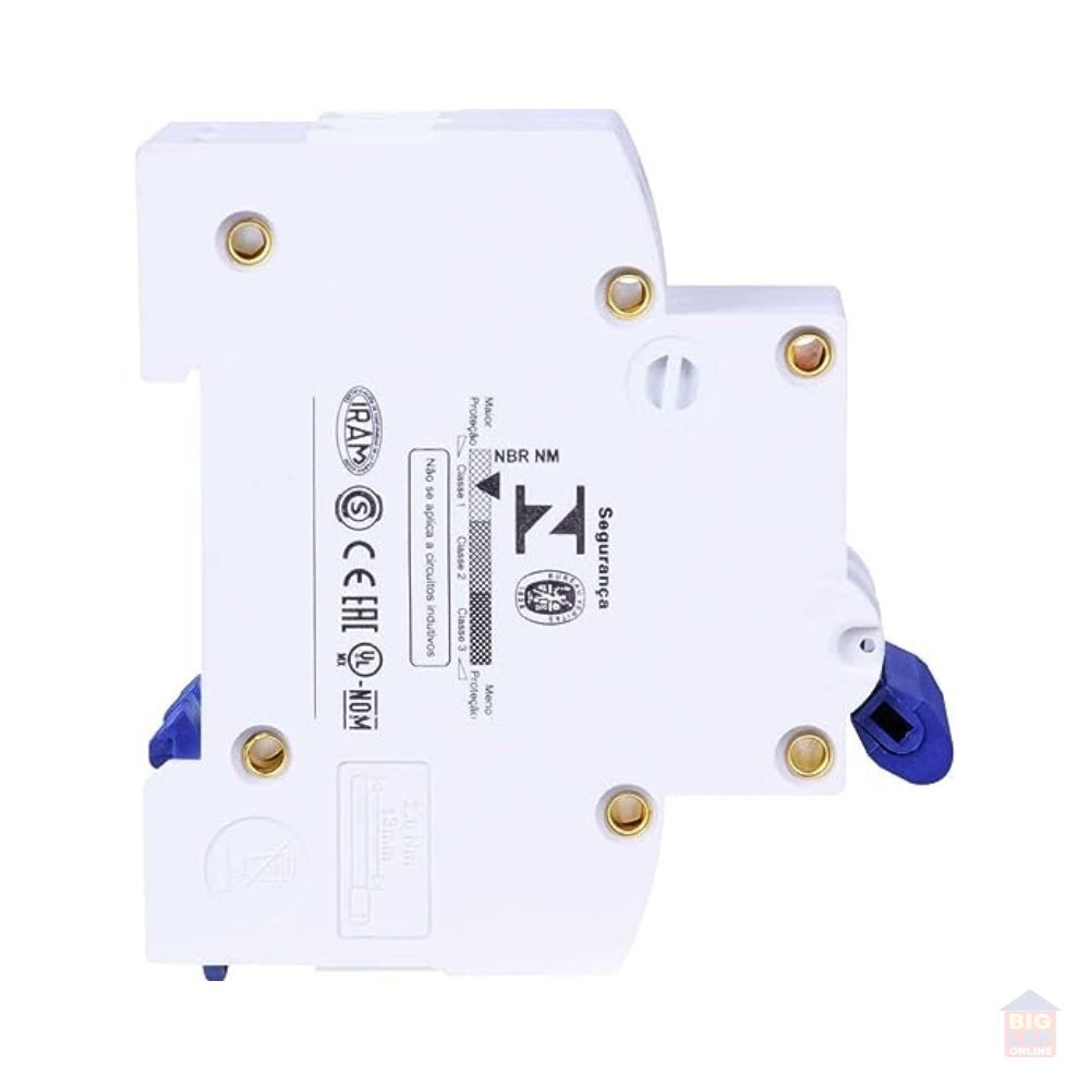 Resumo das características técnicas Curva de disparo C Corrente nominal 40A Número de polos 1 Polo Tensão de emprego 440Vca/250Vcc Frequência 50/60 Hz