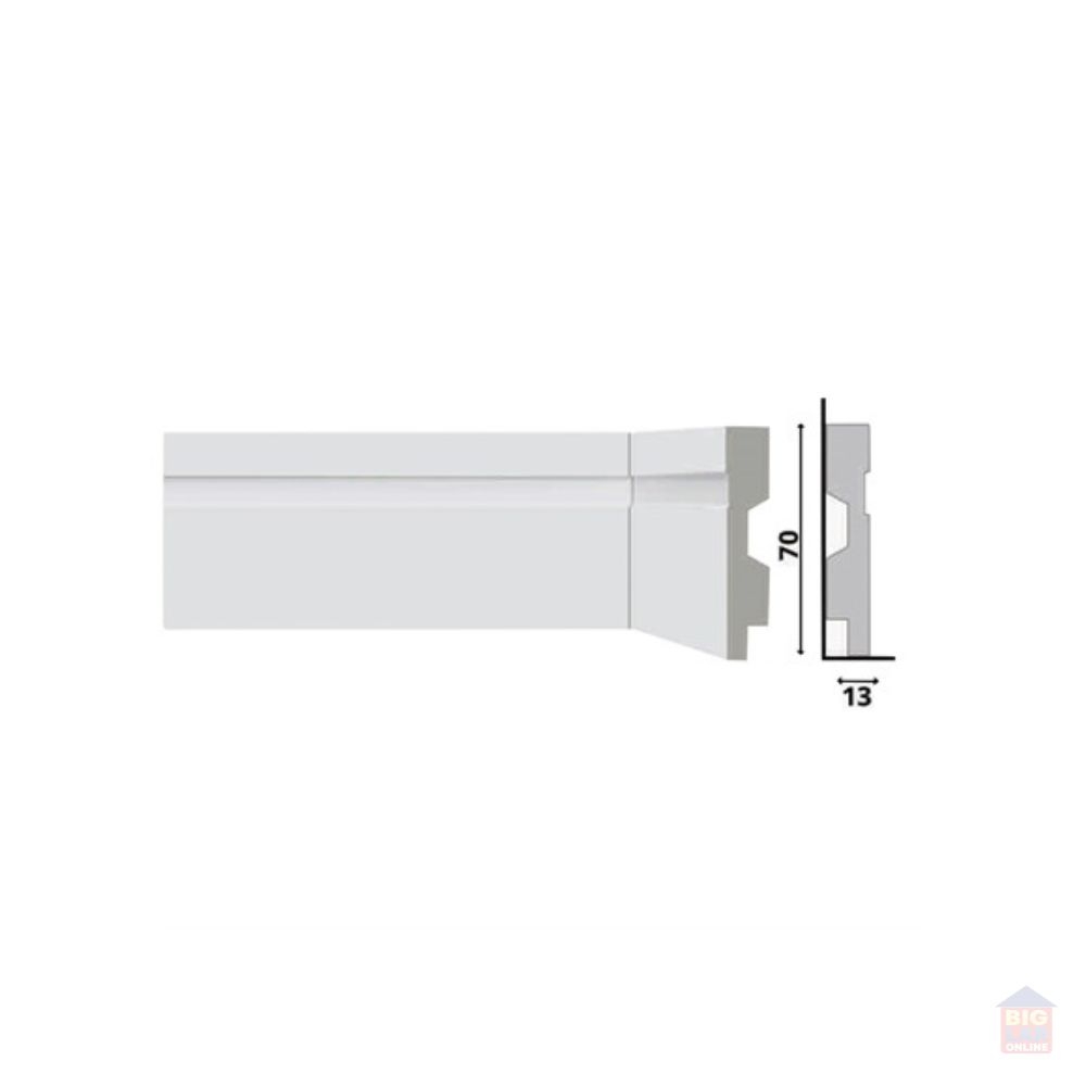 O Rodapé B72 RP/A Renova Flex da Bellitas possui Vinco, é produzido em Poliestireno na cor Branca, tem espessura de 1,3cm, altura de 7cm e comprimento de 220cm. Ideal e muito importante para dar um bonito acabamento ao piso, conta com passa fios, além de auxiliar na proteção da base da parede, como sujeira e impactos de materiais de limpeza, tais como vassouras e aspiradores, por exemplo.