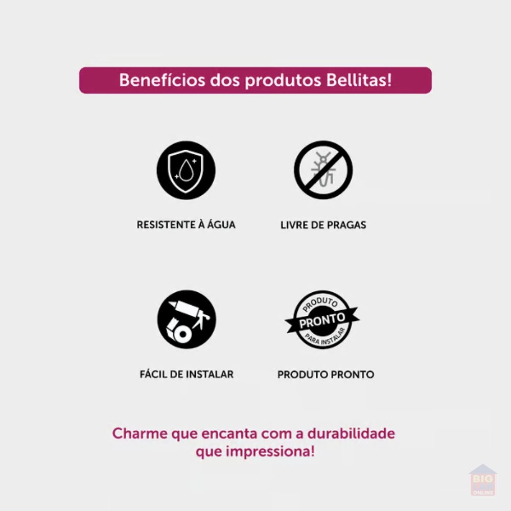 Benefícios:Podem ser instalados em ambientes úmidos, não mofam, não apodrecem e são imunes a traças pois os insetos não se alimentão do produto.