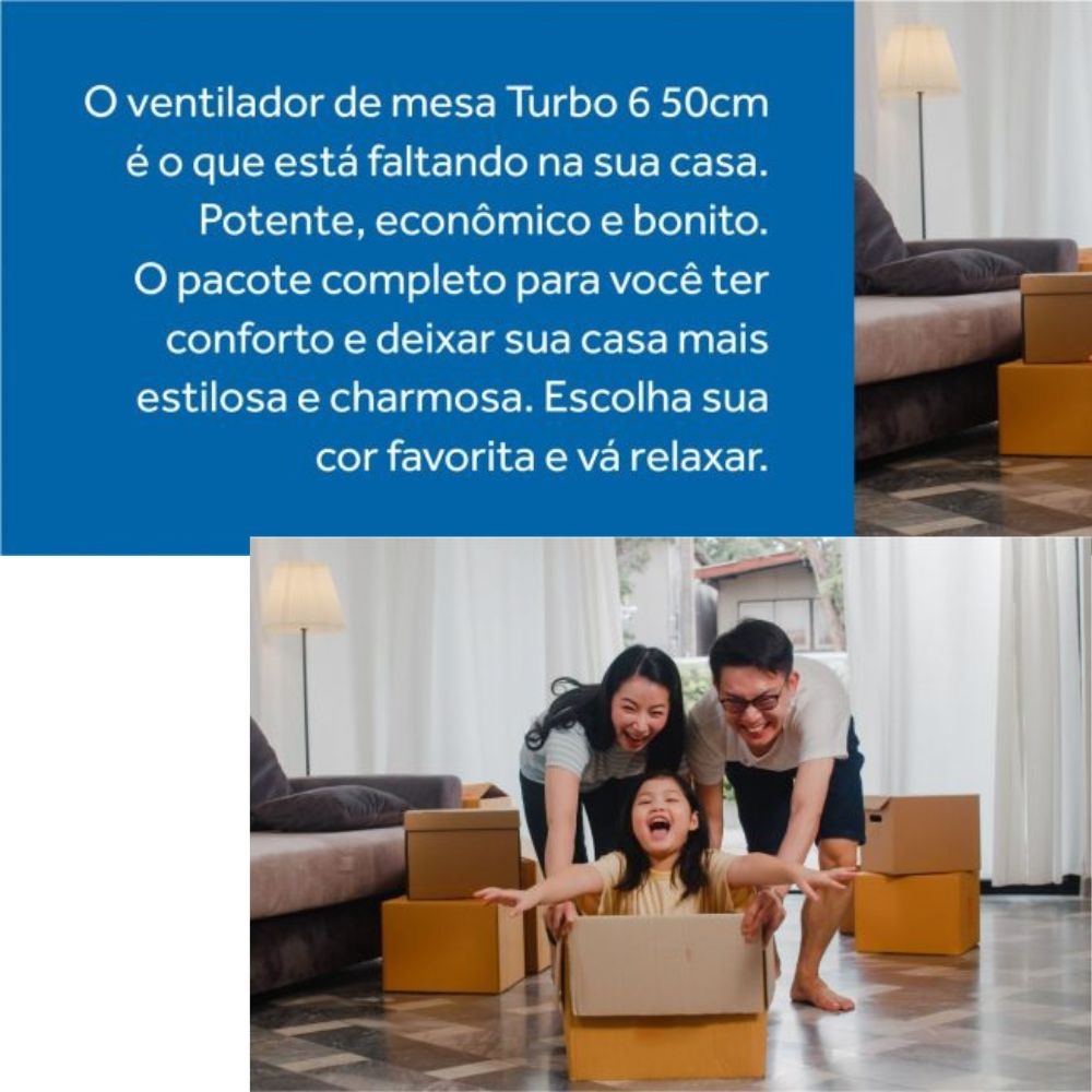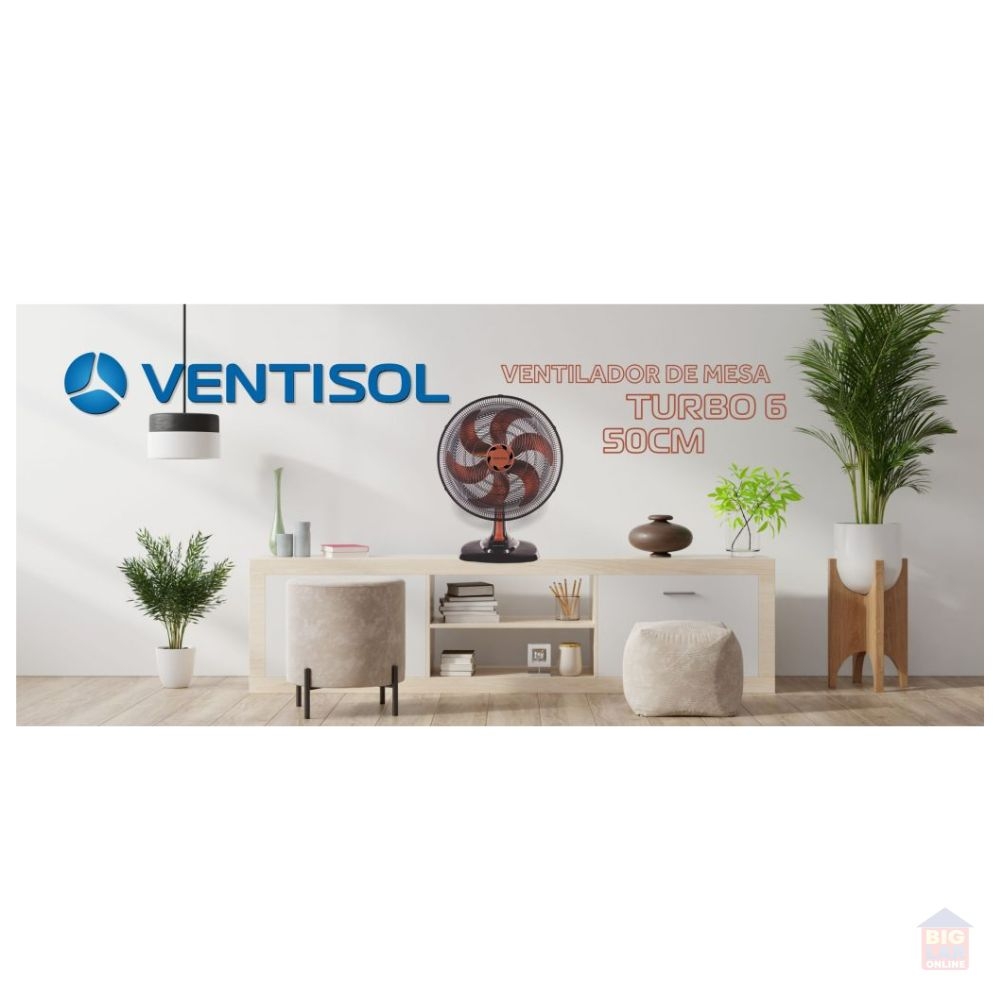 Se você deseja um ambiente mais refrescante e agradável, o Ventilador de Mesa Ventisol Turbo 6 50cm é perfeito. Seu Motor Turbo junto com sua hélice de 6 pás com nova aerodinâmica são silenciosos e geram uma maior ventilação no aparelho.