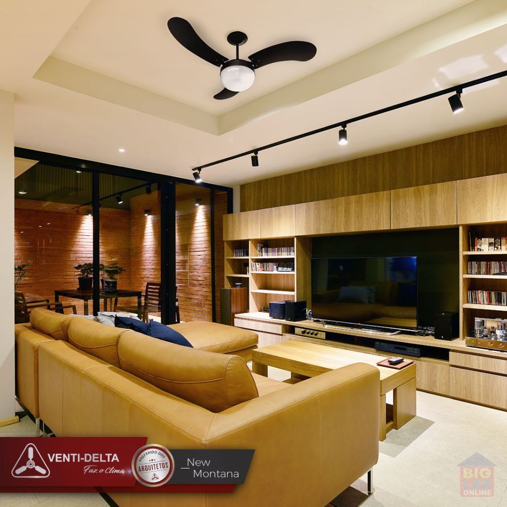 Moderno; agrada aos mais diversos estilos; somando a praticidade dos lustres ao modelo das pás; adapta-se aos mais diversos ambientes