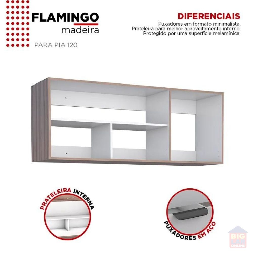 Produto:Armário Aéreo em Madeira Flamingo 1440 mm Preto e Tamarindo Montado(150)