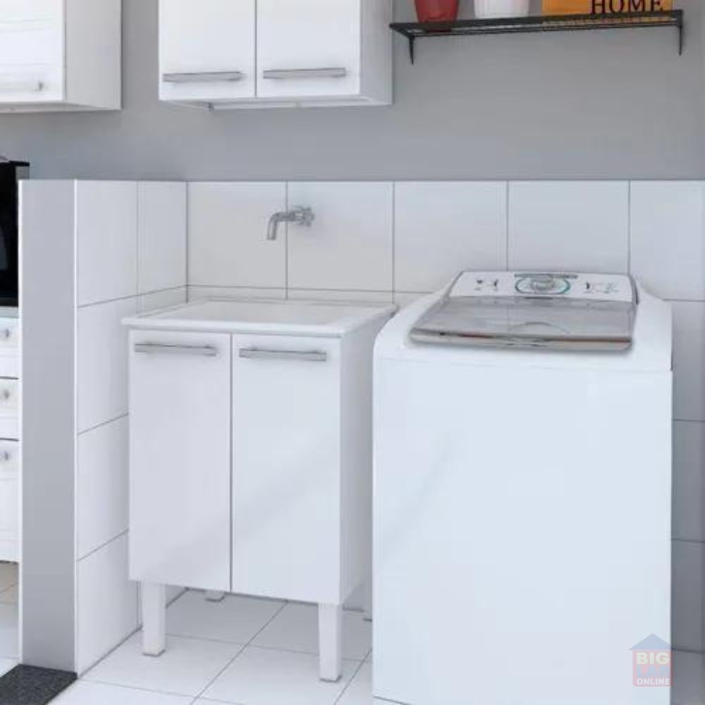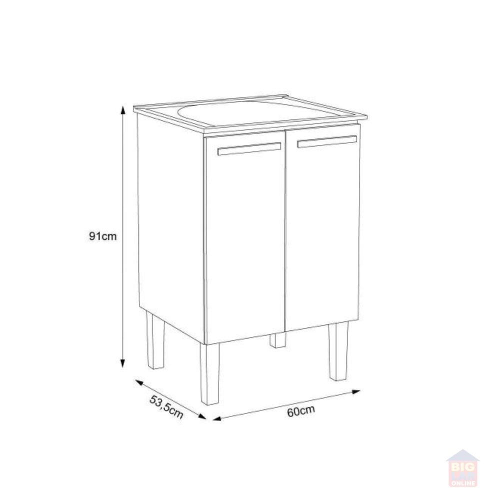 O Tanque com Gabinete em Aço Cozimax Vênus 56,9cm Branco – 89435 é composto por um tanque em mármore sintético de alta qualidade e pés com regulagem de altura, acompanhado de um gabinete com duas portas fabricado em aço eletrogalvanizado que é resistente à água e corrosão.
