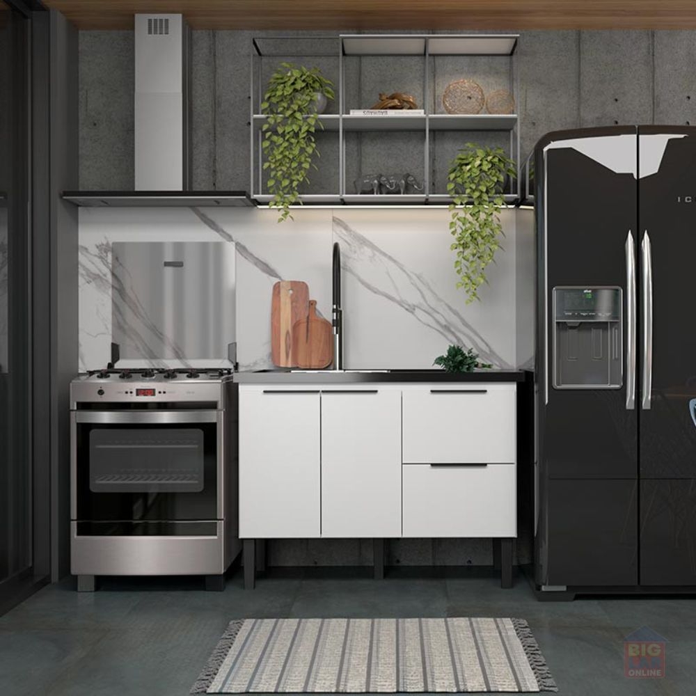 O Gabinete para Cozinha em Madeira Cisne 85x114cm Branco da Cozimax é elegante e sofisticado, fabricado com chapas de madeira com acabamento em cor fosca em todo exterior, possui porta condimentos em aço, prateleira e divisão interna para organizar utensílios, duas gavetas com puxadores exclusivos em estilo minimalista e uma gaveta embutida, dobradiças com amortecimento e pés na cor preta com regulagem de altura.
