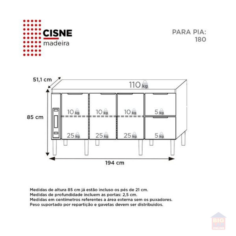 Dimensões da Pia (A x L x P) cm: Não Acompanha Produto