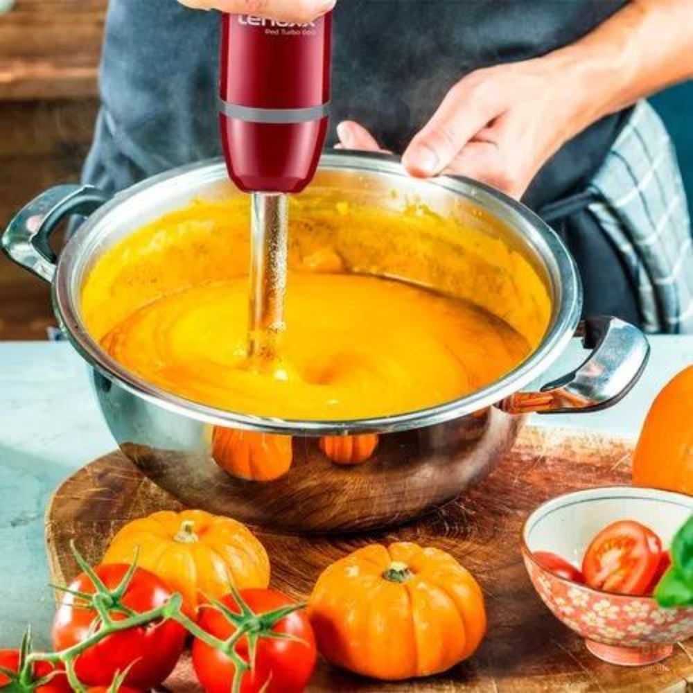 Inox: Possui uma haste e lâmina dupla de aço inoxidável que ajuda a triturar melhor e mais rápido seus ingredientes. Use direto na panela.