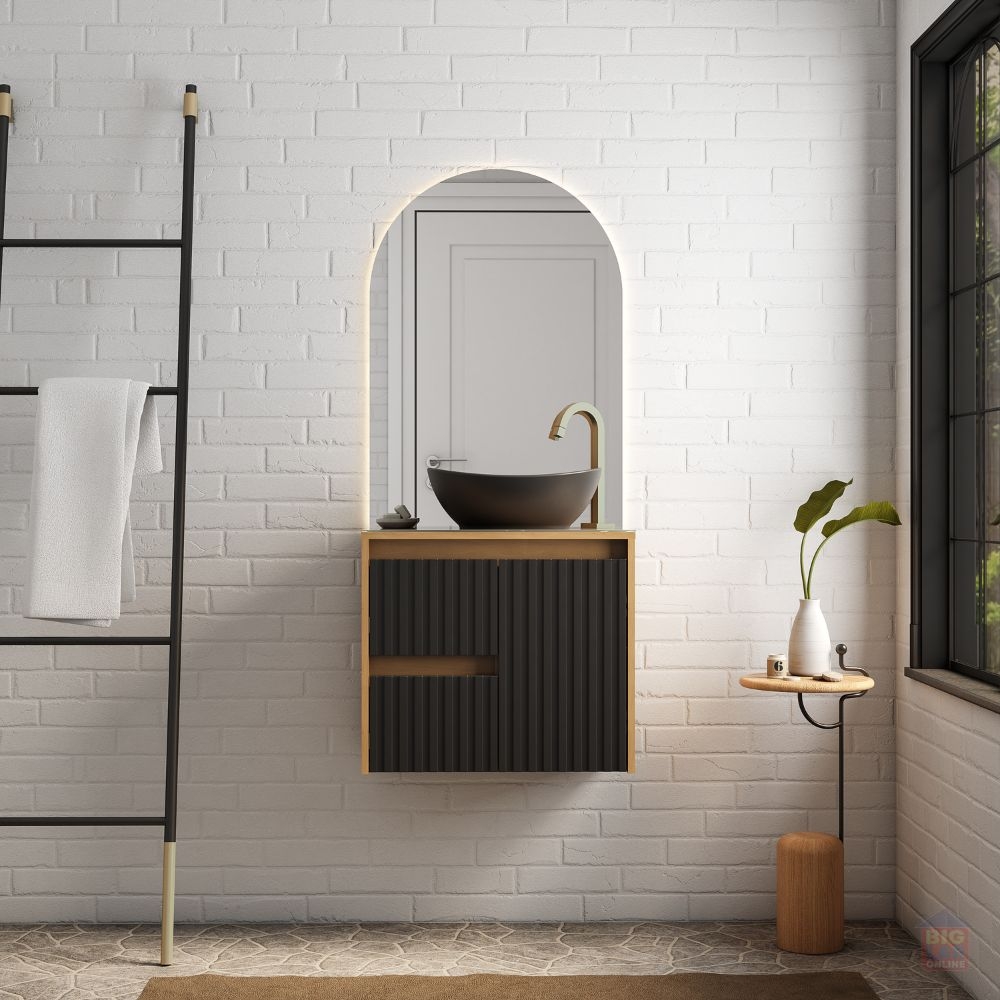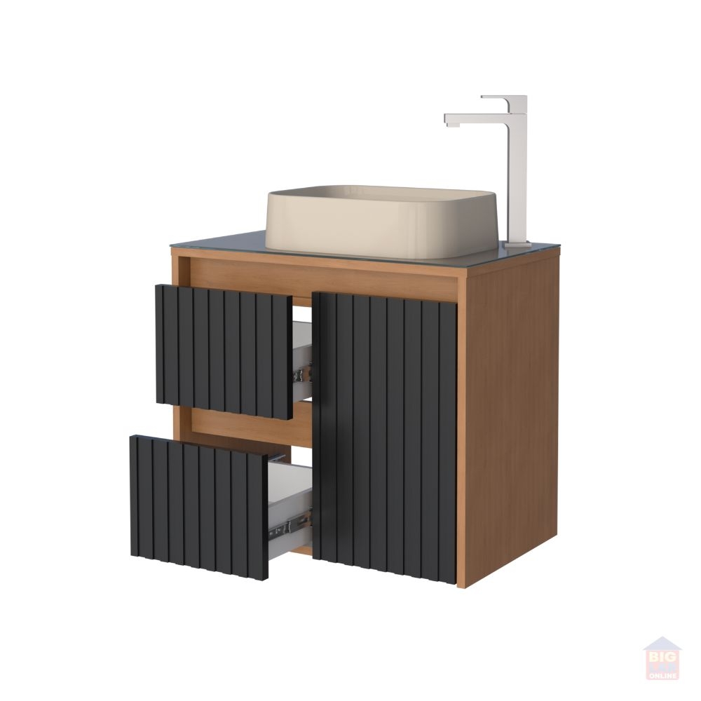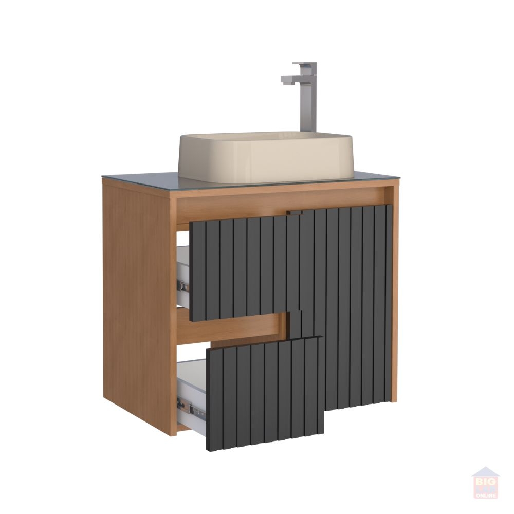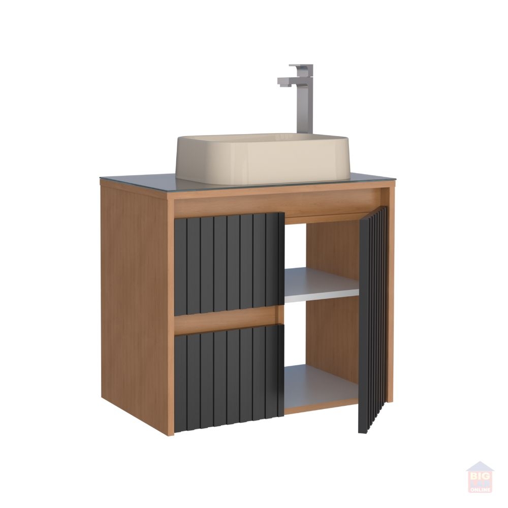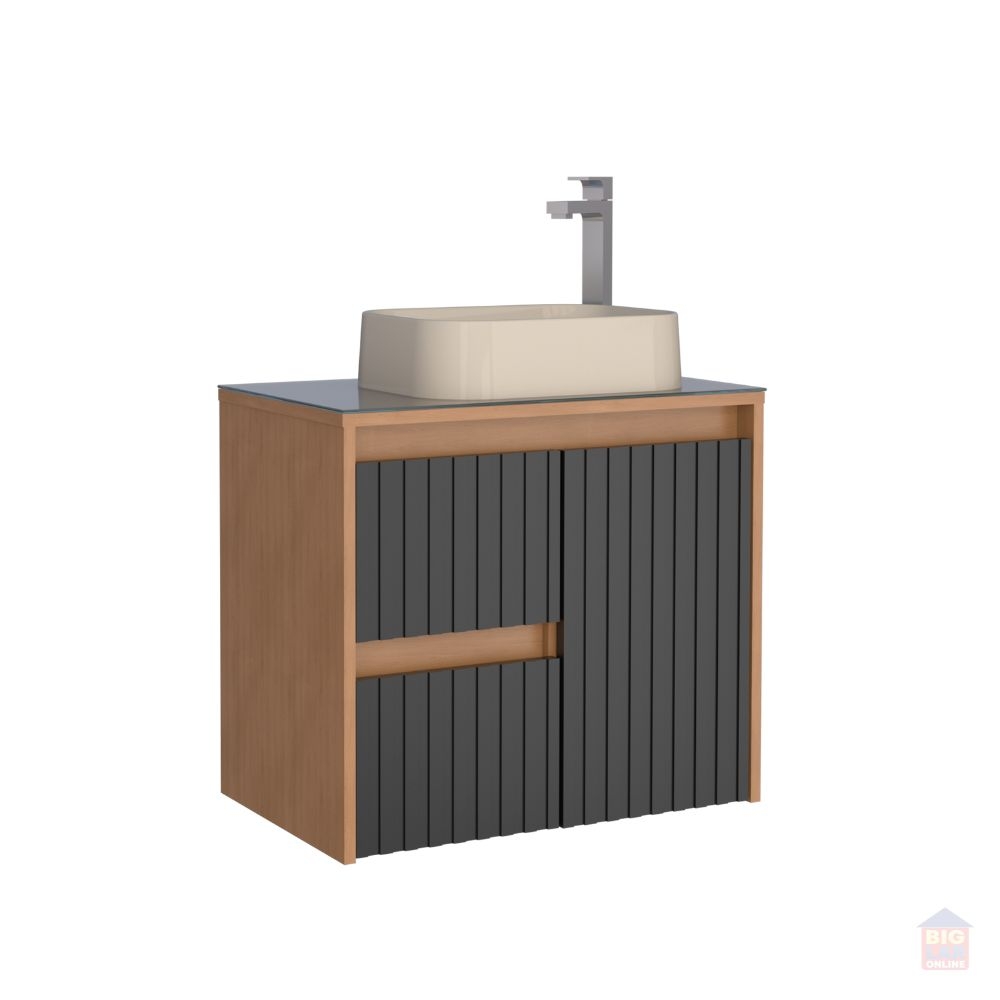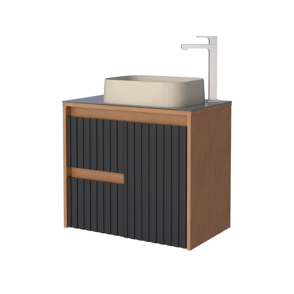 Gabinete Para Banheiro Em Madeira Suspenso Kyoto Jequitibá c/ Preto - Cozimax