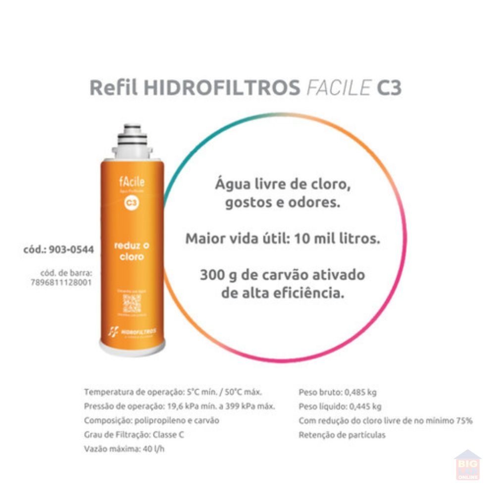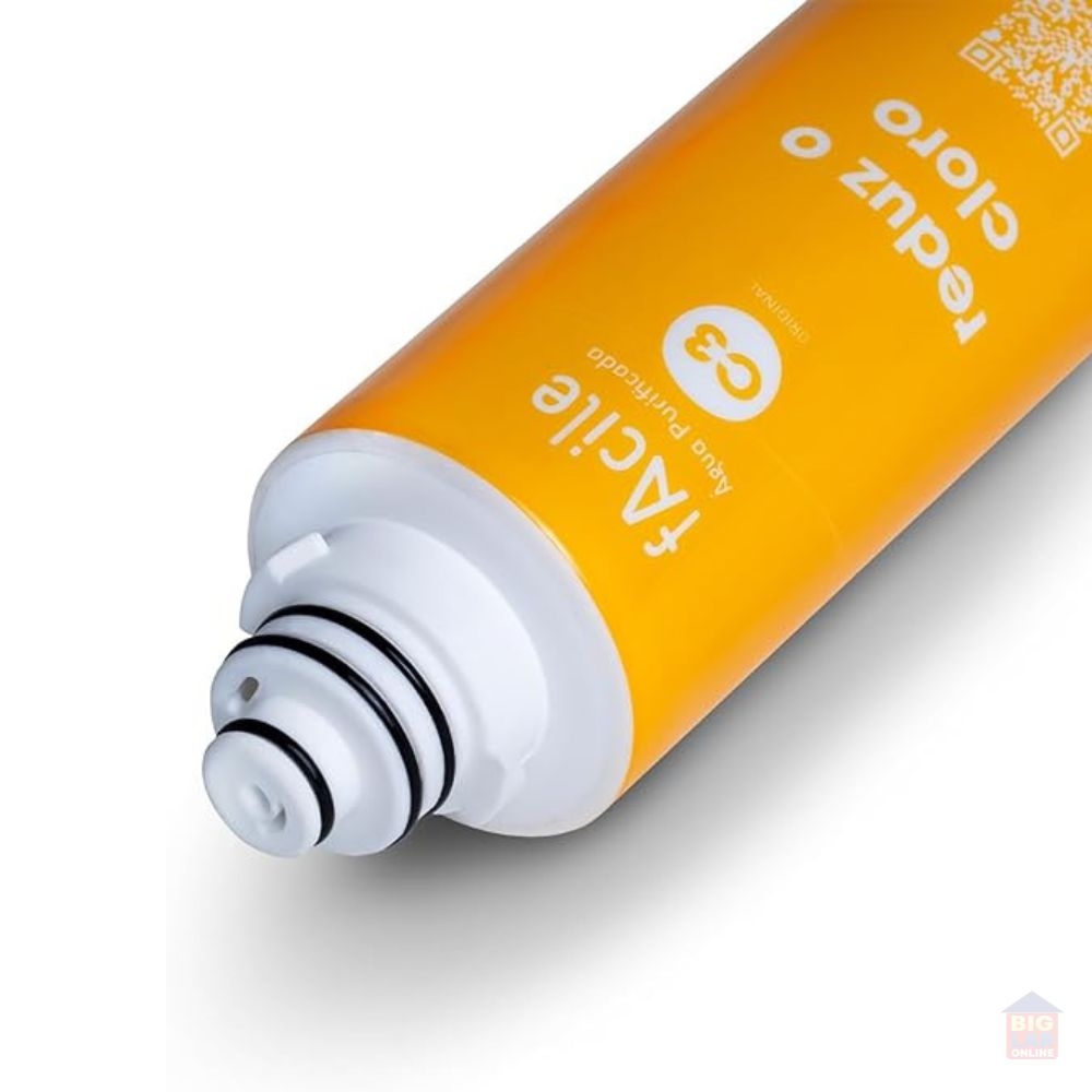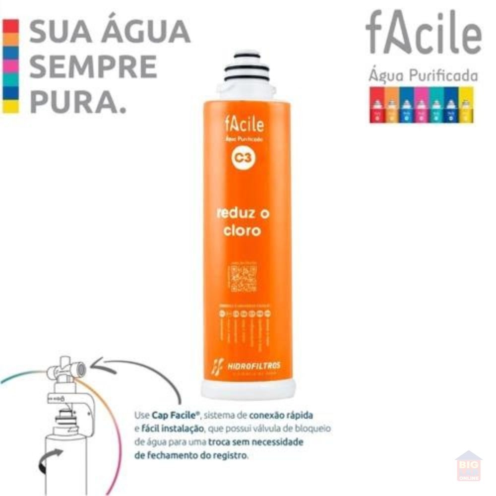 O Refil Facile® C3 possui elemento filtrante capaz de adsorver o cloro livre e reduzir outros componentes orgânicos que causam gosto e odor desagradável na água.