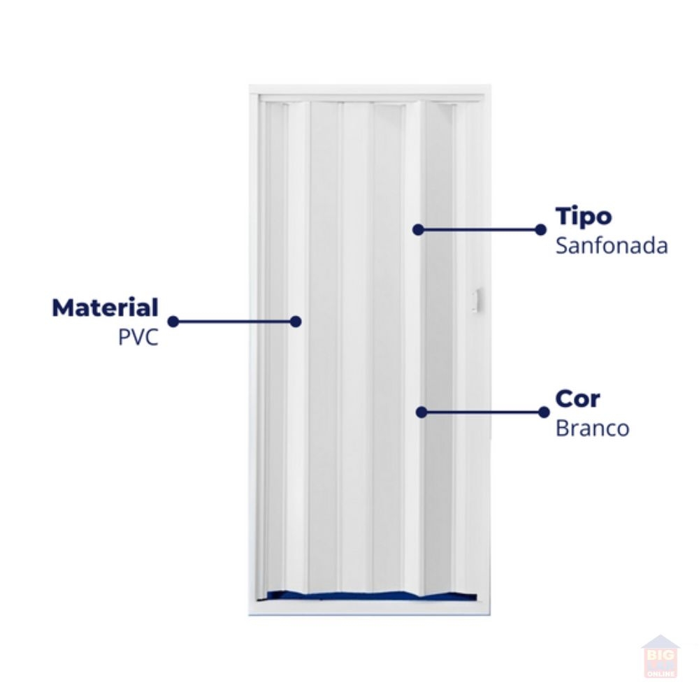 Porta Sanfonada PVC 210x80cm Branca Fortlev - Big Lar Online