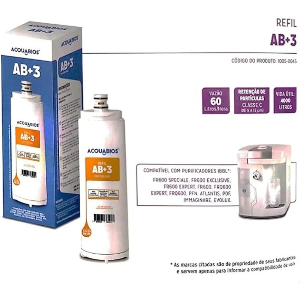 *Compatível com purificadores IBBL: FR600 Speciale, FR600 Exclusive, FR600 Expert, FR600, FRQ600 Expert, FRQ600, PFN, Atlantis, PDF, Immaginare, Evolux.* *As marcas citadas são propriedades de seus respectivos fabricantes e aparecem apenas para demonstrar a compatibilidade deste produto.