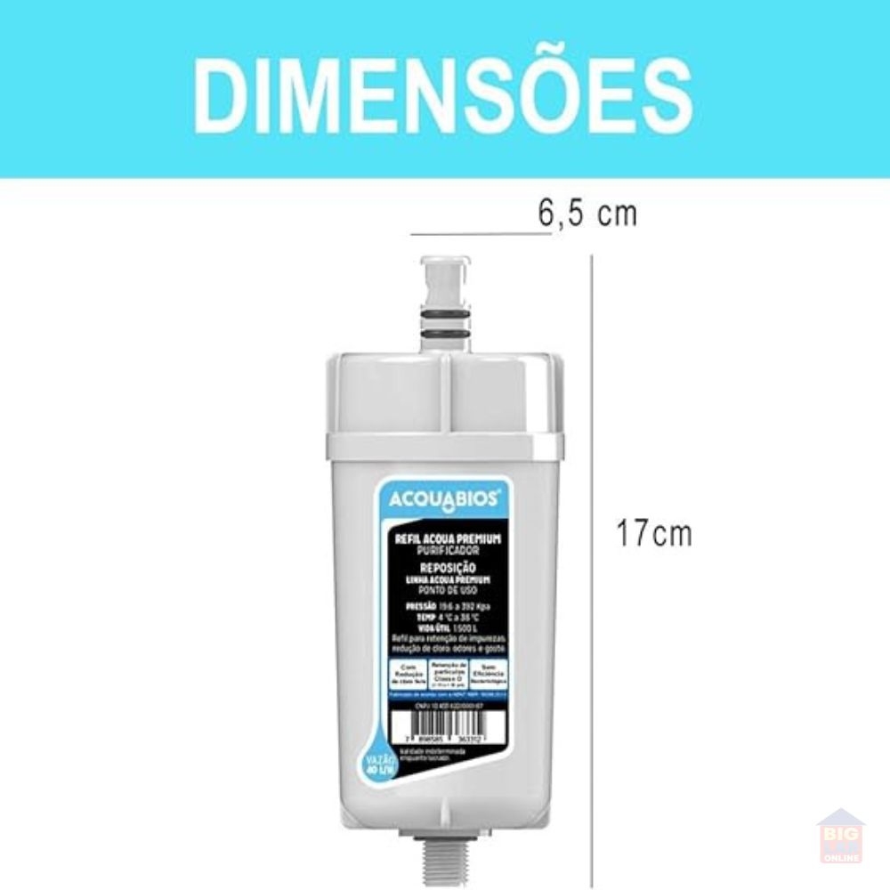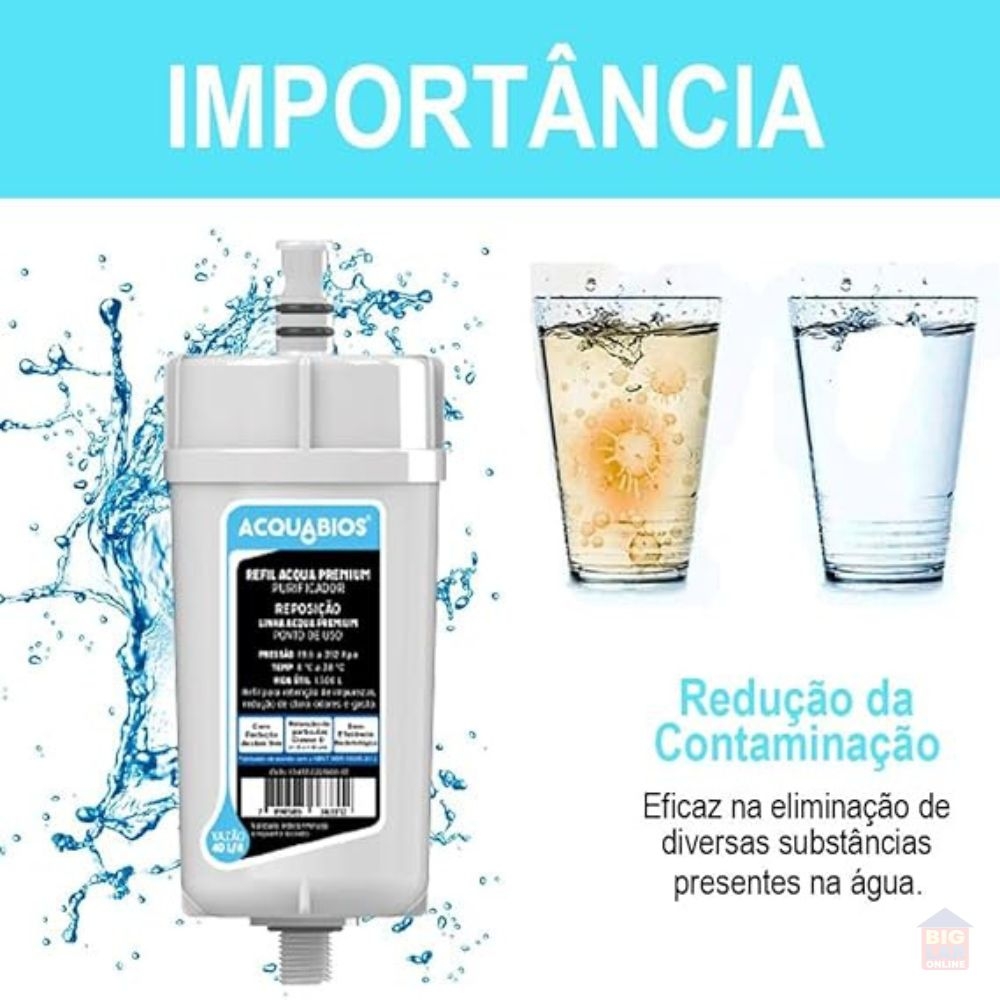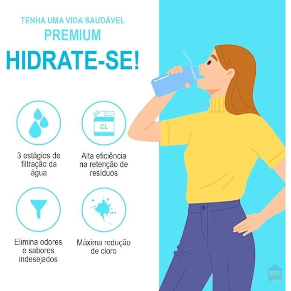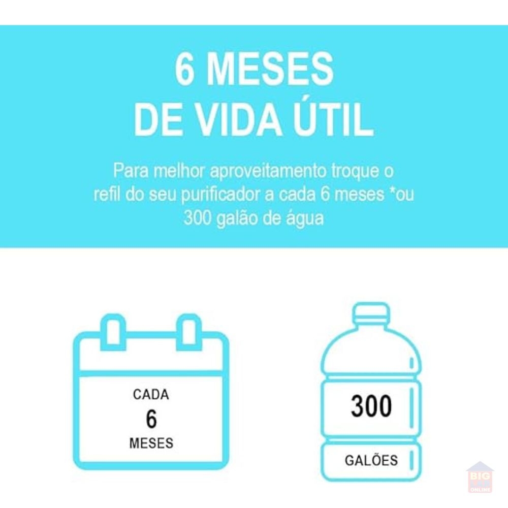 Refil modelo blindado e com tripla filtração. Eficiência na remoção de partículas, odores e turbidez da água.
