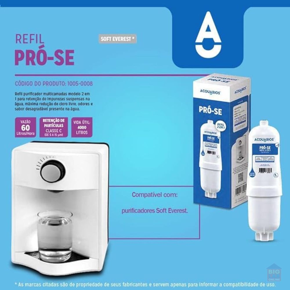 Indicações de uso Indicado para uso em geladeiras com refil purificador externo, em bebedouros de coluna como pré-filtro, sob a bancada de cozinhas e banheiros e outras aplicações. Compatível com purificadores da marca Soft Everest*