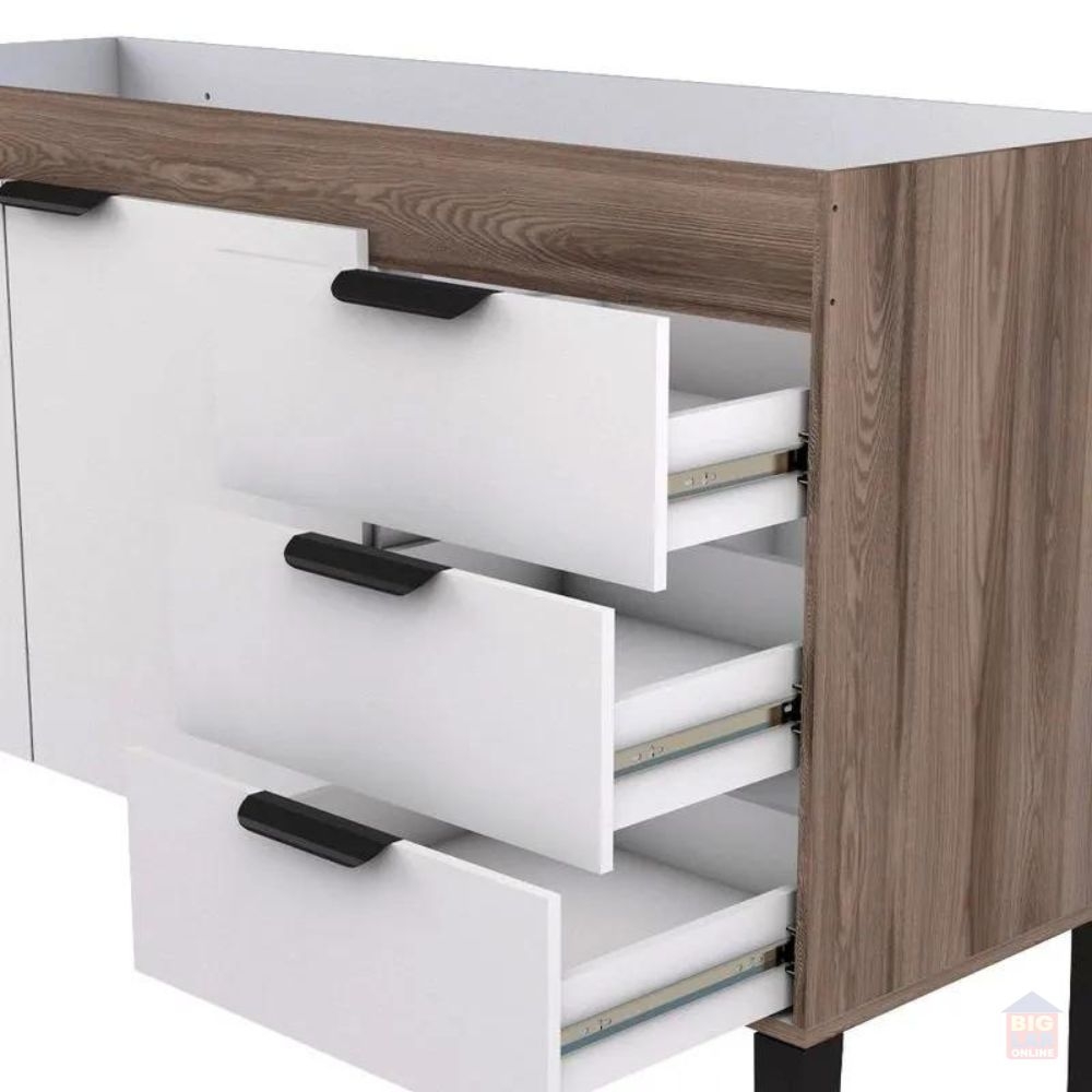 Acabamento em preto fosco Gavetas com corrediças telescópicas Pés na cor preta com regulagem de altura Puxadores em Aço Galvanizado