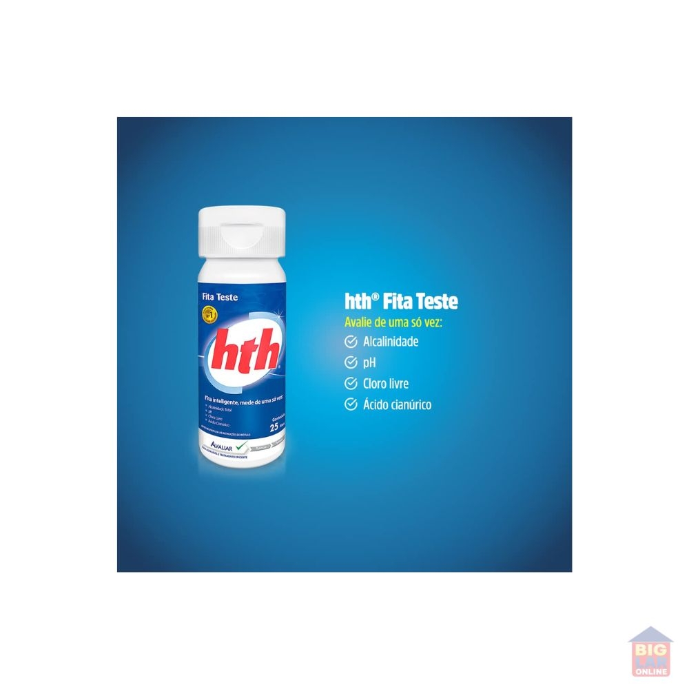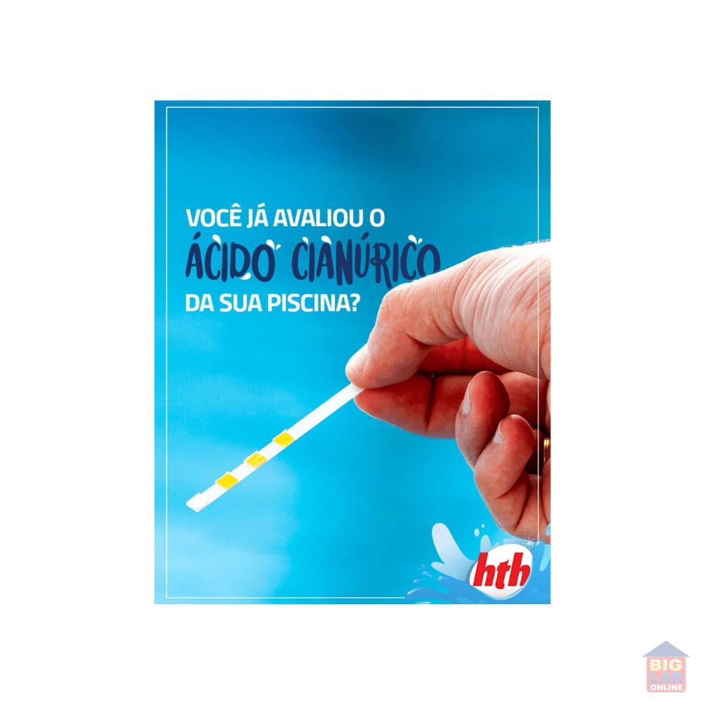 3. Pronto, a hth® Fita Teste já avaliou a água. Compare as cores da fita com as cores do rótulo seguindo os parâmetros recomendados: - Cloro Livre: entre 1 a 3 ppm, garante a pureza da água ao eliminar os micro-organismos. Avaliar o cloro livre a cada 2 dias. - pH: entre 7,0 e 7,4, garante máxima eficiência do cloro livre, previne corrosão dos equipamentos e acessórios, além de proporcionar água pura e suave para pele, olhos e cabelos. Avaliar o pH semanalmente. - Alcalinidade Total: entre 80 e 120 ppm, contribui para a estabilidade da água, equilibra o pH, garante a máxima eficiência do cloro livre proporcionando água pura e suave para pele, olhos e cabelos. Avaliar a Alcalinidade Total uma vez por mês. - Ácido Cianúrico: acima de 50 ppm, prejudica a eficiência da purificação do cloro livre. Avaliar a cada 3 meses quando se usa cloro estabilizado ou pastilhas.