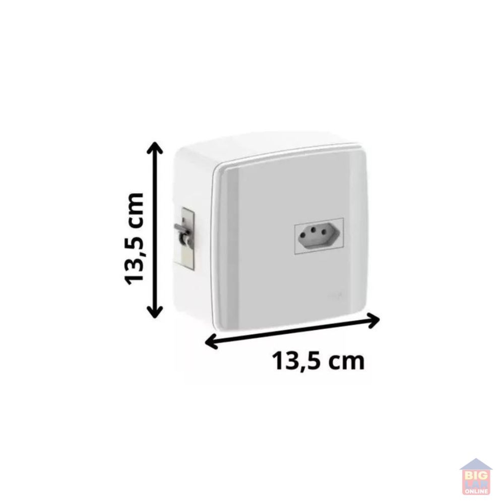 Caixa de Sobrepor com Disjuntor Unipolar 25A + Tomada 20A Ilumi ideal para eletrodomésticos, especialmente ar condicionados. Caixa de Sobrepor com Disjuntor Unipolar 25A + Tomada 20A Ilumi desenvolvida para ser sobreposta no ambiente, não sendo necessário uso de parafusos e furos na parede.