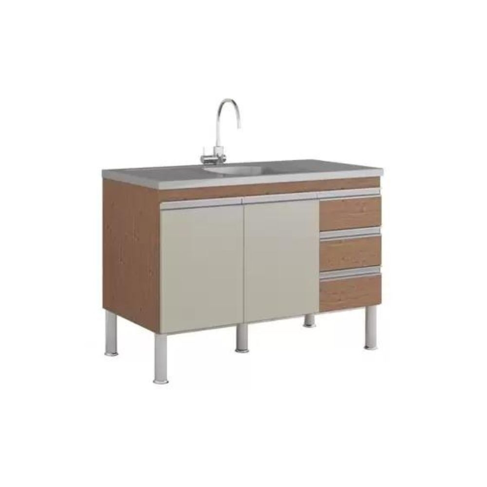 Produto: Balcão Cozinha Ibiza 1,14 Metros Amêndoa e Off White, Conteúdo da Embalagem:1 Balcão, 1 Kit de Pés e Puxadores, 1 Manual de Instruções.