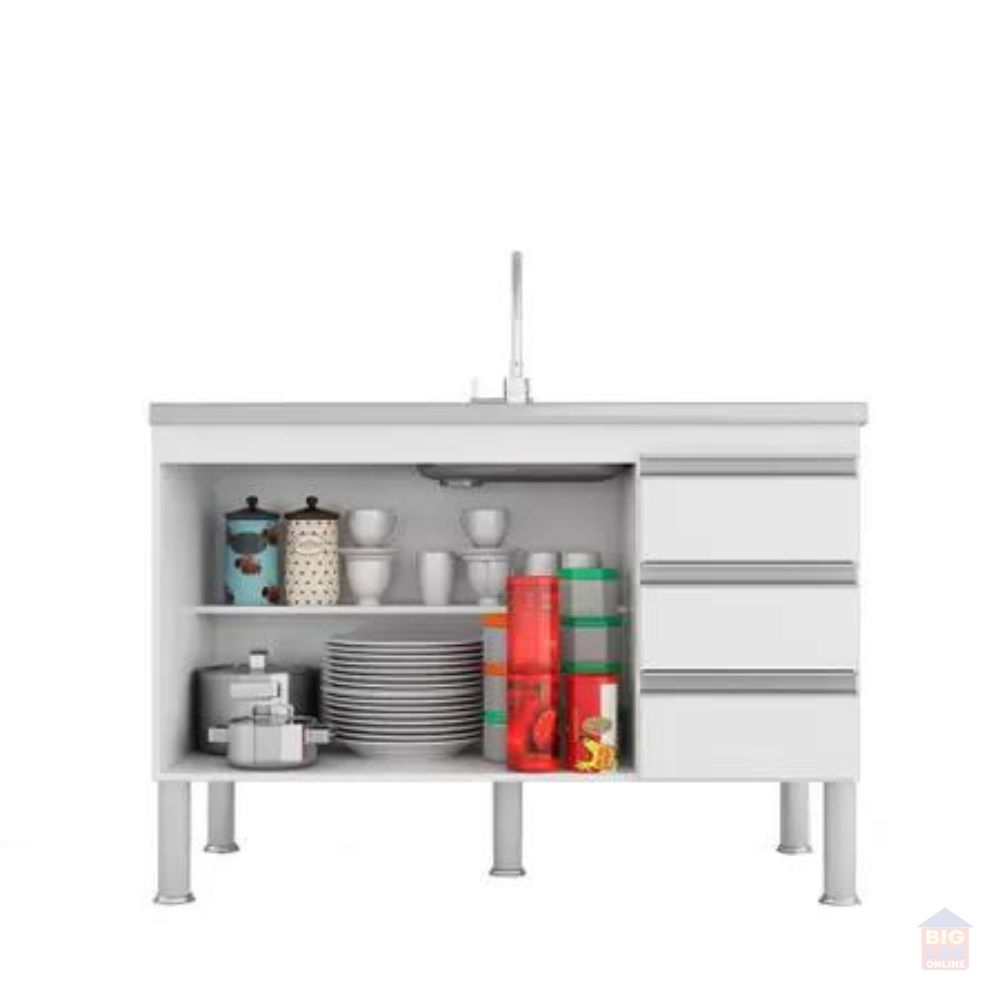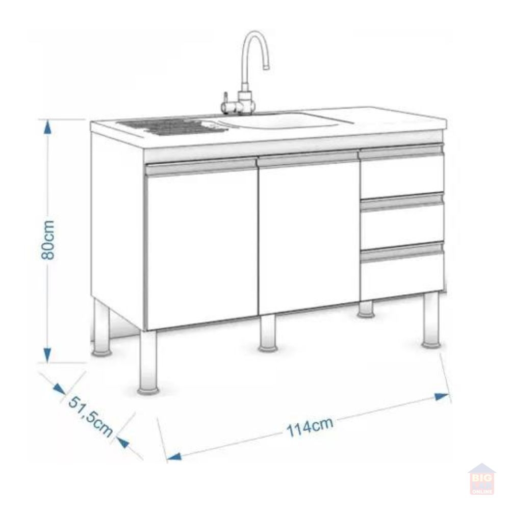 Produto não acompanha tampo, nem pia. A MGM Móveis surgiu em abril de 2004, iniciado suas atividades em um pequeno galpão e com uma produção 100% artesanal. Hoje a MGM Móveis conta com uma moderna fábrica e produz cerca de 30 mil peças por mês, em material de qualidade e sempre buscando inovação e designs exclusivos. Seus produtos são fabricados 100% em MDF reflorestado, respeitando o meio ambiente e o desenvolvimento sustentável.