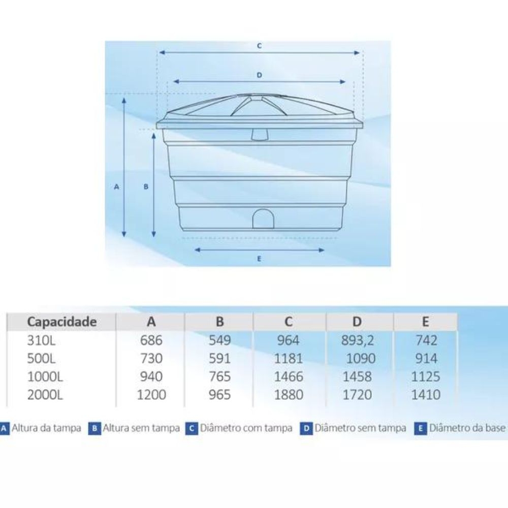 DESCRIÇÃO: CAIXA D'AGUA COM TAMPA POLIETILENO- MAIS PVC.