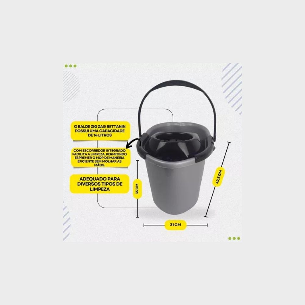 Balde com Espremedor ZIG ZAG é um item de limpeza que facilita a higienização de pisos com seu mecanismo de espremer integrado.
