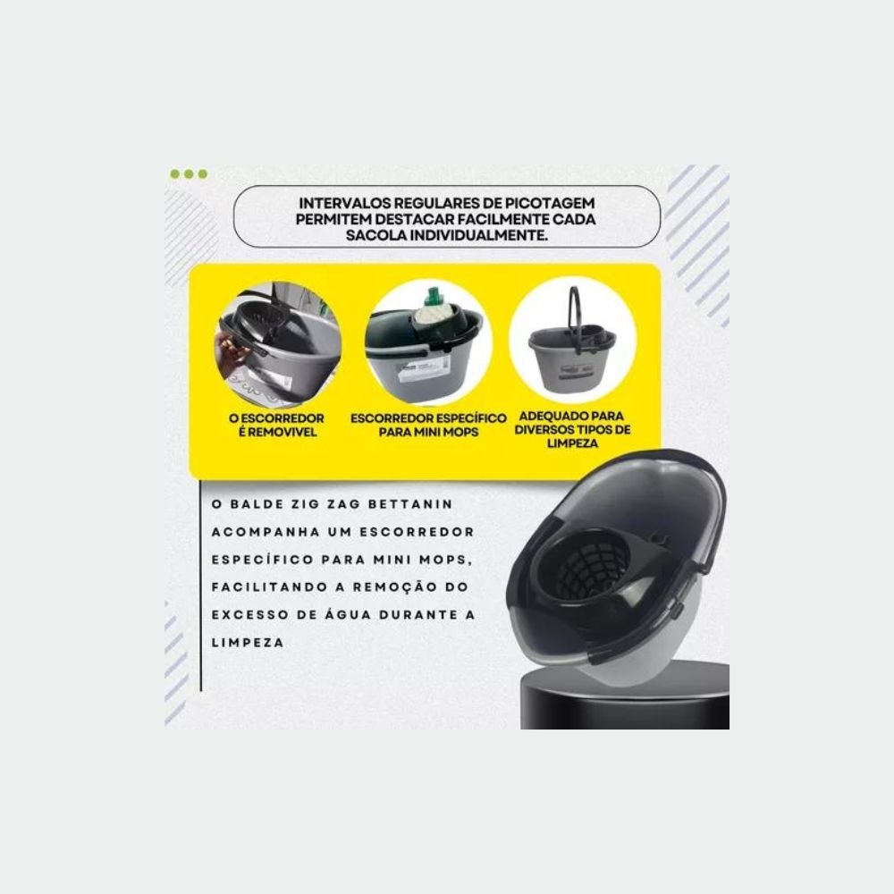 - Acessórios: Acompanha um escorredor específico para mini mops.